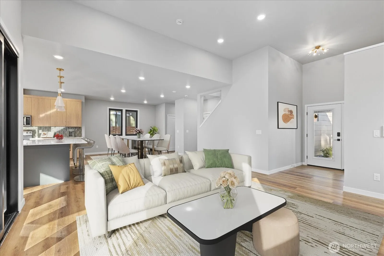 Welcome home to this stunning like-new 2025 build in the Crossridge Urban Community, where elevated finishes and thoughtful design greet you at every turn! From the moment you arrive, this stunning home makes a statement. A metal roof and European multi-tilt windows hint at the quality within, and the interior delivers on every level. LVP flooring flows seamlessly through the main level where an electric fireplace anchors a warm and welcoming living space. The kitchen is a true showpiece with quartz countertops, Stainless Steel appliances, designer tile & lighting, and a massive island that makes everyday living feel a little more luxurious. A ductless mini-split ensures effortless comfort in every season. Step through the slider onto a covered patio with views of the native protection area, offering a rare backdrop of privacy, greenery and serenity. The fully-fenced backyard with low-maintenance turf means more time enjoying the outdoors and less time maintaining it. Upstairs, you’ll find the primary suite featuring vaulted ceilings, walk-in closet and stylish en-suite bath with motion-sensored under cabinet lighting and a walk-in shower. Two additional bedrooms, full bath and laundry room adds the finishing touch of true everyday convenience. Located near shopping, restaurants, parks & schools. Up to 1% lender credit with preferred lender!