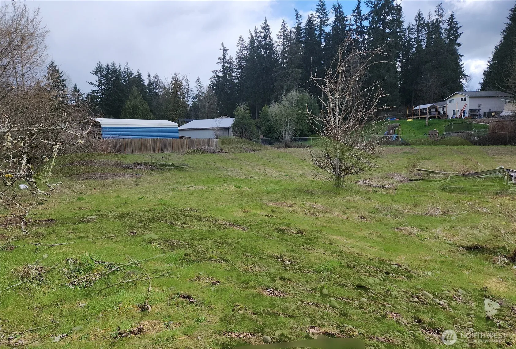 This functional 3 bedroom 2.25 bath is nestled on a 1.3 ACRE corner lot, which is already divided into two 28,000 square foot parcels for future development. The open space is level and covered with grass, garden space and fruit trees. The 2 car garage has high ceilings and service door that out leads to cement patio and RV parking. The interior boasts natural light throughout the entire home. The living and dining room are spacious and open to each other. The Kitchen with eating space is equipped with pantry. Laundry/Mud room has utility sink and closet. Newer Roof, Newer Air Conditioned Furnace , Newer Water Heater. Septic System has been serviced and pumped.