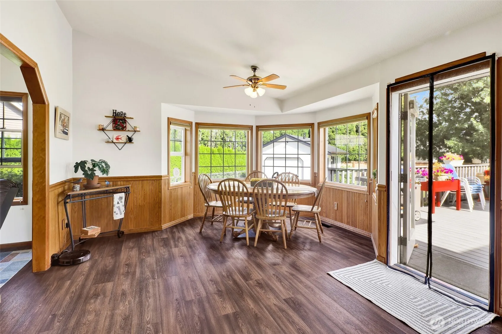 Room to live, gather, and grow—inside and out. Tucked away on a quiet cul-de-sac, this light-filled home offers 5 bedrooms, 3.5 baths, and flexible living across three well-designed levels. Southern exposure pours natural light into the living room, where a cozy gas fireplace sets the tone, and into the open kitchen and dining spaces that invite gathering. A 2003 addition created a true owner’s retreat—an expansive primary suite with its own sitting area and fireplace, perfect for unwinding at day’s end. The lower level opens up even more possibilities with a spacious family room featuring a gas stove, partial kitchen, private entrances, plus a fifth bedroom and bath—ideal for multi-generational living, guests, or potential ADU use. Step outside to a fully fenced 1/3-acre yard where a large sycamore tree graces the backyard, offering cooling shade and a natural perch for taking in neighborhood views. Whether you’re entertaining on the oversized Trex deck, gardening, or letting pets roam, this outdoor space truly shines. Covered parking for three includes both attached and detached one-car garages (shop potential), plus a sprinkler system for easy care—all just minutes from Bender Fields and everyday conveniences.