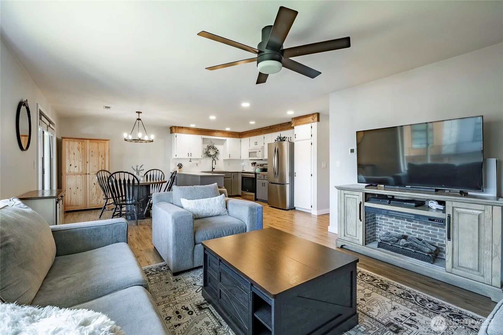 Welcome to this bright and cheerful home in the heart of downtown Lynden! This beautifully remodeled, single-level residence is filled with natural light and thoughtfully updated throughout. Enjoy the fresh feel of all-new finishes, including interior paint, stainless steel appliances, luxury vinyl plank flooring, carpets, sinks, and even stylish new blinds. Large windows invite sunlight to pour into every corner, enhancing this warm and beautiful home. The spacious kitchen flows seamlessly into the dining and living areas, creating an ideal setting for both everyday living and entertaining. Step outside to your private covered deck—perfect for savoring a peaceful morning coffee, or unwinding in the evening with a good book. The generously sized primary bedroom offers comfort and a relaxing escape, while a second large bedroom sits conveniently across the hall. Additional features include a covered carport, a sheltered walkway to the front entry, and a personal built-in storage shed for added storage and convenience. Ideally located within walking distance to charming shops, dining, parks, and trails, this home truly has it all. Move-in ready and waiting for your personal touch—come start making your lasting memories here. Welcome home!