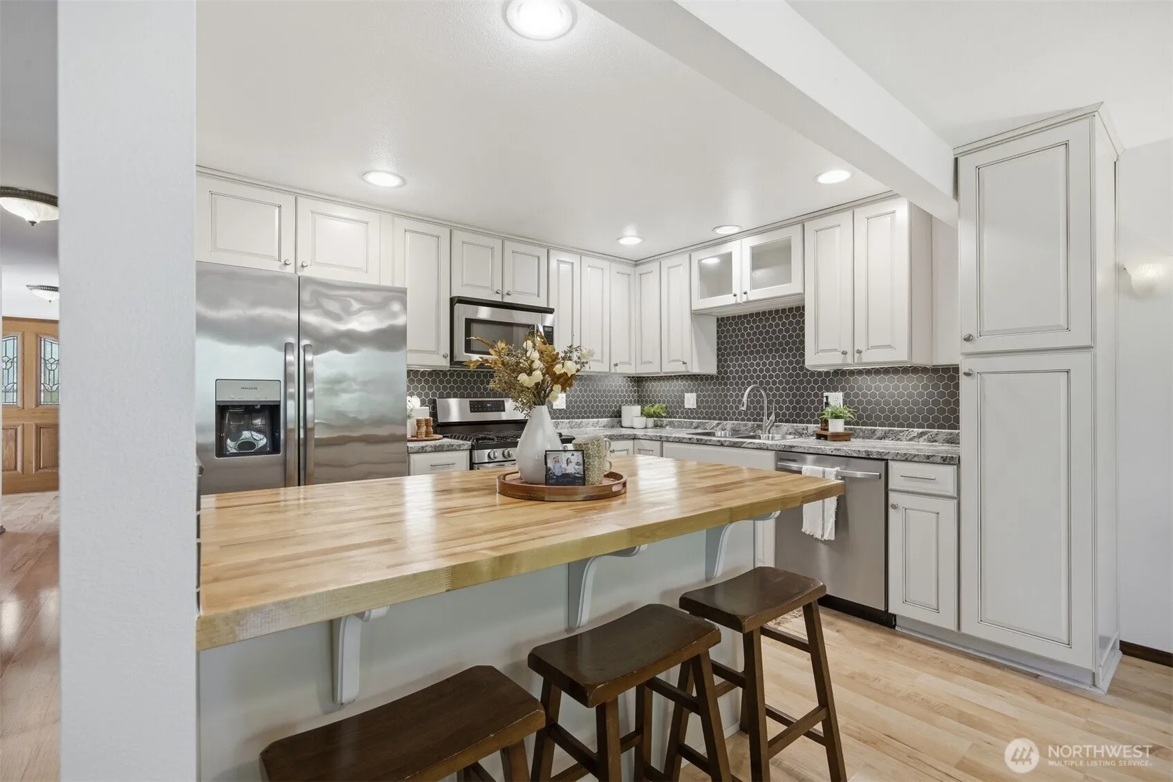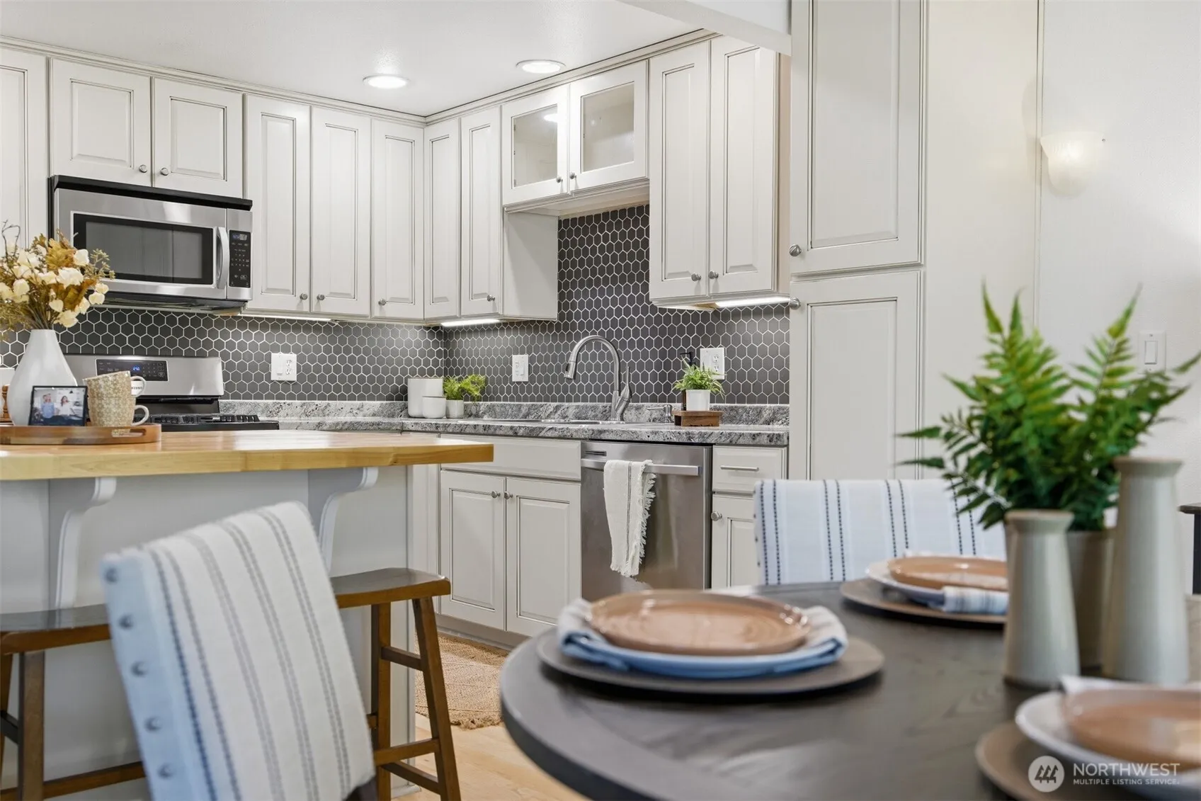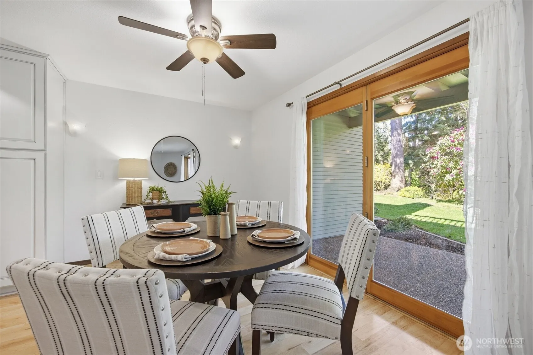 Nestled in the heart of Lynden, this ground level end unit offers the kind of walkability & privacy that’s hard to find. Steps from the bus route, shopping, & restaurants, the location delivers real convenience while still feeling tucked away. Extra natural light & a park-like backdrop make this one stand out from the moment you arrive.Inside, the open layout connects a remodeled kitchen with new appliances to the living & dining area, all flowing out to a private patio that overlooks a serene setting with a creek below. Brand new carpet & fresh paint throughout means it’s truly move-in ready. The primary suite is tucked away with a large walk-in closet & en suite bath, offering a quiet retreat at the end of the day. The second bedroom is flexible, working equally well as a den, office, or guest room. Washer & dryer are in-unit in their own utility room, & pets are welcome.A detached single car garage plus an assigned parking space give you more storage & convenience than you’d expect. The community clubhouse rounds it out. Whether you’re a first-time buyer, downsizing, or simply looking for low-maintenance living in a great location, this one is worth a look.