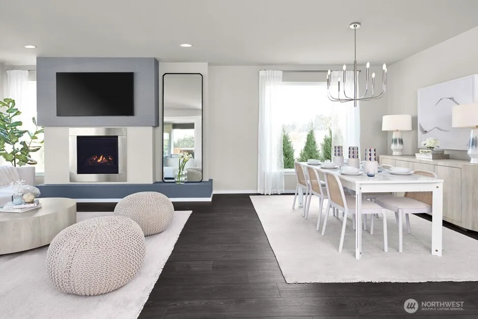 The Maple V5 at Eaglemont Community with MainVue Homes in Monroe is a luxury three-story home featuring a 3-car garage and a double-story Foyer on the lower floor. A Home Office at the front of the home offers direct access to an expansive covered deck, seamlessly connected via wall-height sliding glass doors. At the heart of the home, the centralized Gourmet Kitchen boasts a 3cm Quartz-capped island, a Grand Butler’s Pantry, and an additional walk-in pantry for extra storage. The Multi-Purpose Room on the main floor provides flexible living space with access to the Signature Outdoor Room. The Grand Suite is a private retreat with a double-door entry, a spacious dressing room, a free-standing tub, dual vanities, and a frameless shower.