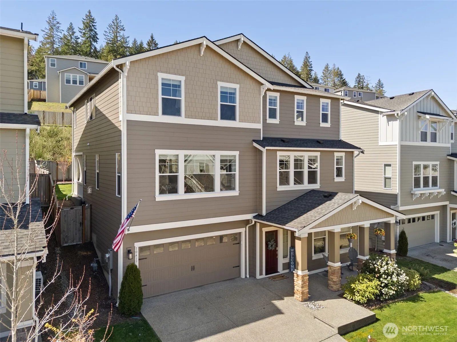 Beautiful, luxurious, meticulously kept home in one of Silverdale’s most sought after neighborhoods; Sterling Hills Estates neighborhood. With over 3300 square feet, this flexible, well designed floorplan is the perfect blend of the comfort and convenience of everyday living, including A/C, with an ideal space for entertaining. Open concept where light abounds in the open living room and dining room, overlooked by the gorgeous and dreamy chef’s kitchen with chic, wood cabinetry, Quartz countertops, SS appliances (gas stove!) and spacious walk-in pantry. The Primary Suite offers a peaceful,, yet stylish retreat with dual closets, and spa-like attached bath with soaking tub. 3 additional bedrooms, plus two full baths. Nice, sunny flat backyard is fully fenced, with the covered porch fully ready for hosting BBQ’s and making memories. Sterling Hills neighborhood has several walking trails, 3 playgrounds and is ideally located in the award winning Central Kitsap School District.