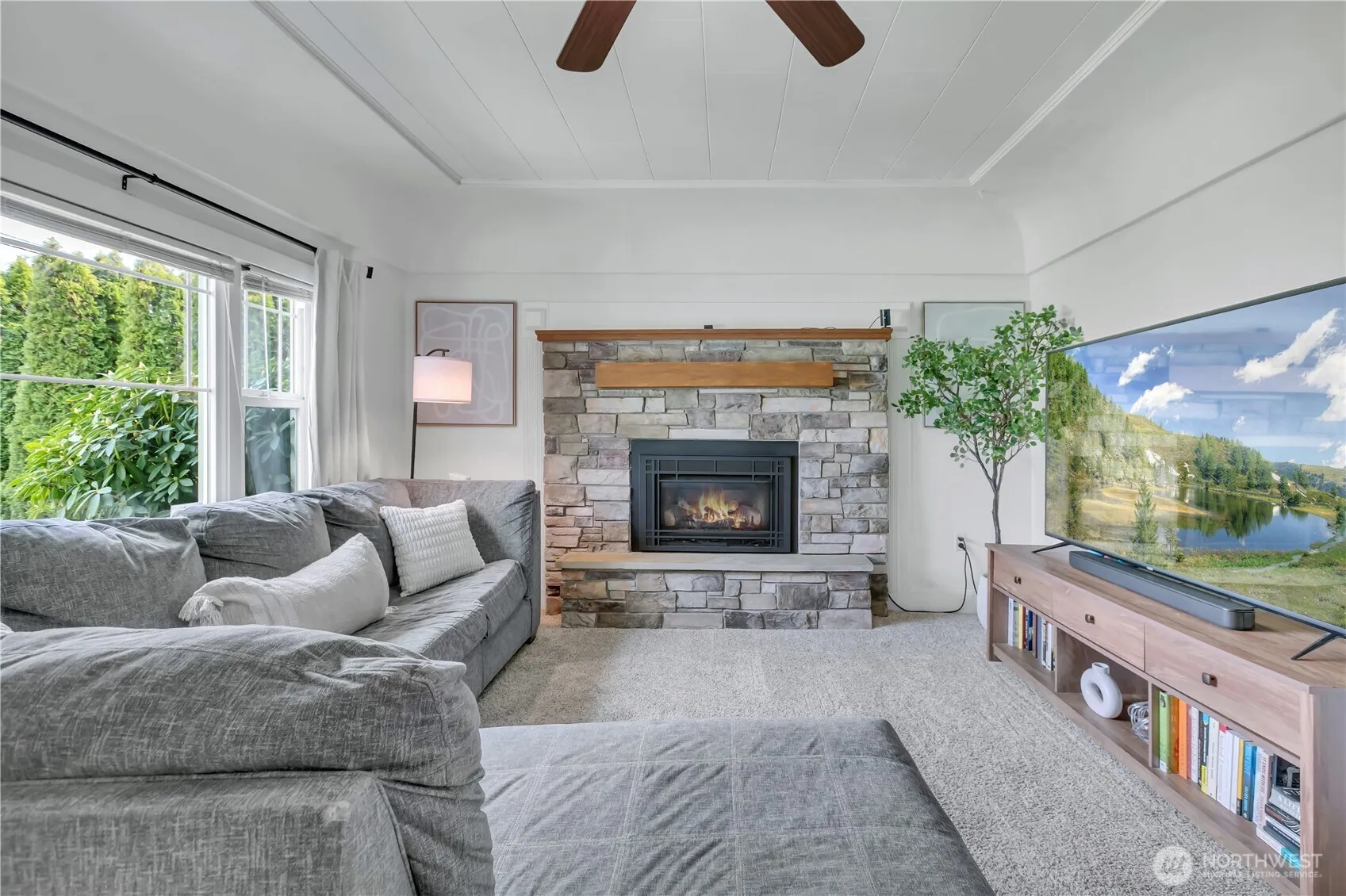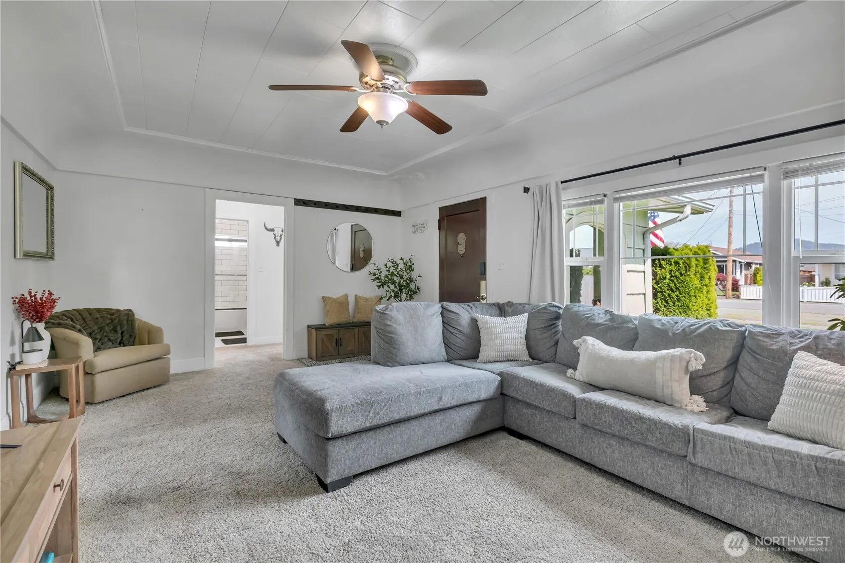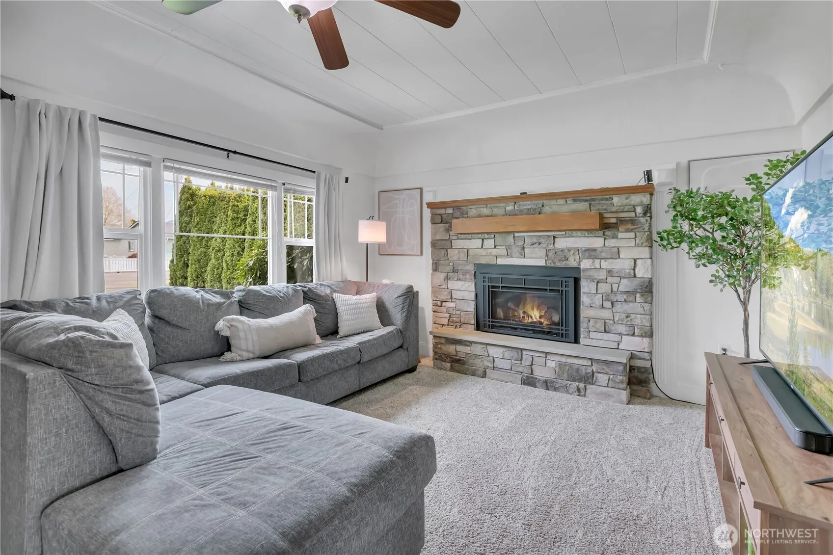 Country charm meets comfort in this delightful 2-bedroom, 1-bath home offering 972 square feet of thoughtfully designed living space. The efficient floorplan lives larger than expected, making the most of every inch. Step into the spacious, light-filled living room featuring a cozy gas fireplace—perfect for relaxing evenings. The kitchen is both functional and inviting, showcasing oak cabinets, tile countertops, and a stylish backsplash. All appliances are included, and the adjoining dining area features a custom kitchen table, creating a warm and welcoming space for everyday meals. A convenient laundry/mudroom comes complete with washer and dryer, along with abundant cabinetry and storage. Both bedrooms are generously sized and include closet organizers. The full bathroom has been recently updated with a new vanity, tiled tub/shower surround, and modern plumbing and lighting fixtures. Situated on a fully fenced 6,000 square foot lot, the property boasts mature landscaping that provides privacy and a peaceful setting. The enclosed carport is currently used as a workout space, offering flexibility for your needs. The backyard is perfect for entertaining, featuring a patio with a custom bar area and a large garden shed. Enjoy ample parking with space for your RV, plus additional driveway and street parking. All of this with a quiet country feel just a short walk to downtown Buckley. Don’t miss your chance to own this charming gem—schedule your showing today!