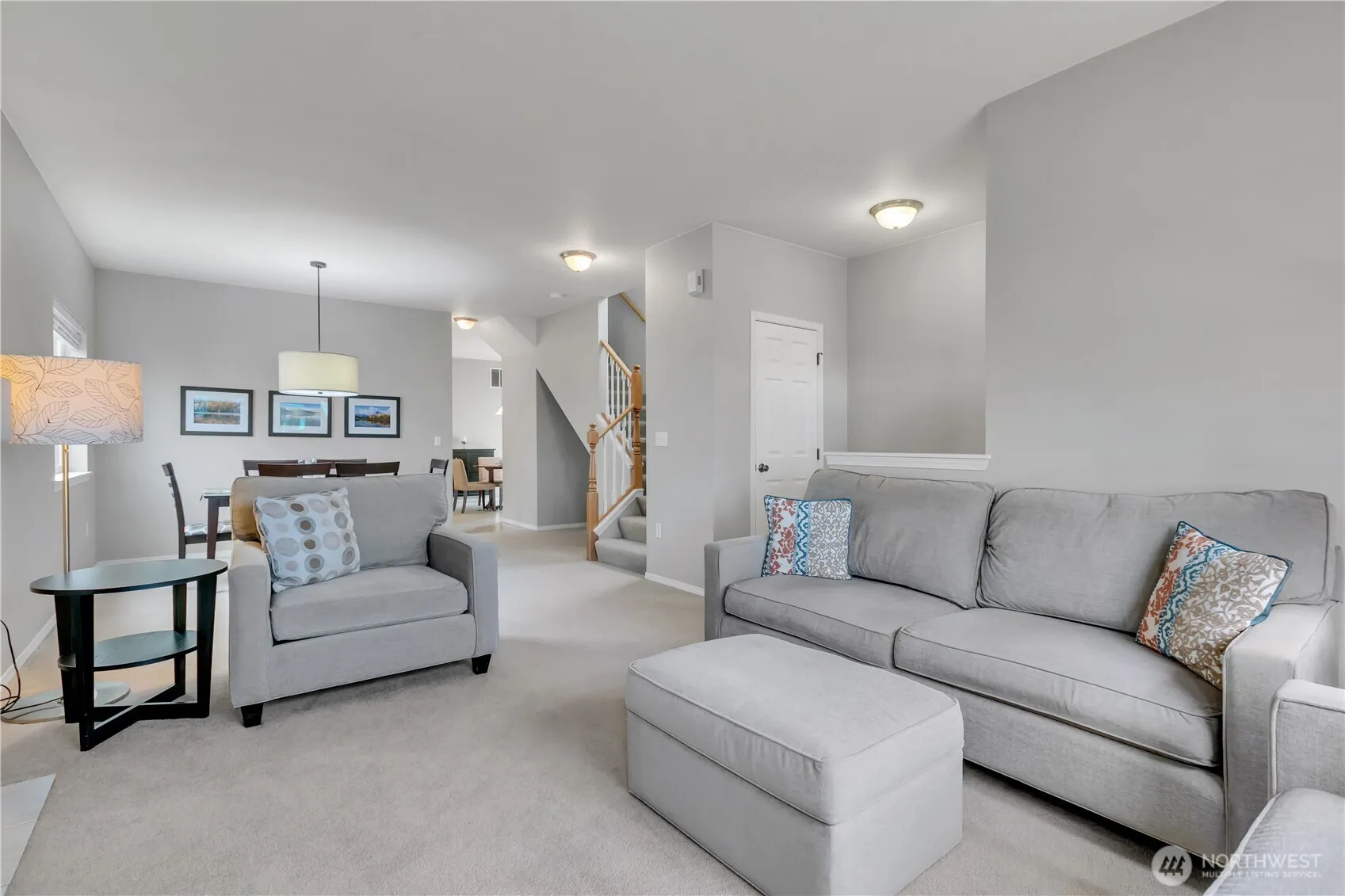 Welcome home to this beautiful residence that shines with pride of ownership, located in the desirable Panorama Heights neighborhood of Sky Island. This well-maintained 3-bed, 2.5-bath home offers 1,677SF finished living space PLUS an upstairs 200SF unfinished bonus room—bringing the total to just under 2,000SF & offering instant equity potential. Open, light-filled kitchen features eating area & sliding glass door leading out to the side yard, perfect for indoor-outdoor living. It comes fully equipped with new GE gas range & microwave, Bosch dishwasher, GE side-by-side refrigerator & new garbage disposal. Formal dining area flows seamlessly into the beautiful living room, complete with cozy gas fireplace. Upstairs, you will find the primary suite with full bath, 2 additional good-sized bedrooms, a full hall bath, laundry room with washer/dryer included & an open loft area at the top of the stairs. Major systems have been recently serviced, including the heat pump/furnace & water heater, offering peace of mind to the next owner. Fenced side yard features new sod, while the front yard showcases low-maintenance rock landscaping with pavers along the side. The property also includes a 2-car garage accessed off the alley, & additional designated off-alley parking. Conveniently located near schools, shopping & nearby park— and just minutes to all the amenities Bonney Lake has to offer—this home blends functionality & opportunity in a highly sought-after community.