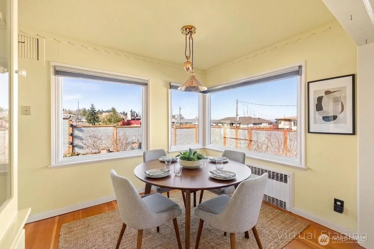 Welcome to this beautifully preserved and modernized 1947 home, ideally situated on an oversized corner lot directly across from the local golf course. This residence masterfully blends historic charm with significant modern upgrades.Inside, original hardwood floors have been professionally restored to their historic luster. The expansive living room features a cozy electric fireplace, custom built-ins, and large windows with custom shades, flowing seamlessly into a dedicated dining area. The kitchen maintains its classic appeal with original floor-to-ceiling cabinetry, a farm sink, and stainless steel appliances.The spacious primary bedroom serves as a true retreat with designer seagrass wallpaper, dual closets, and corner windows. The bathroom preserves its vintage integrity with an original cast iron tub and updated tile. A functional mudroom leads to a fully finished upstairs bonus.Major high-value updates completed within the last five years offer total peace of mind: a new 30-year roof, Anderson Windows, and a paved double driveway plus fenced RV/boat parking off the side street. Two ductless heat pumps ensure efficient year-round comfort.The exterior is a private, fully fenced landscaped haven featuring a covered patio, elegant hardscaping, and a dedicated garden shed. With fresh paint inside and out, this home is move-in ready.