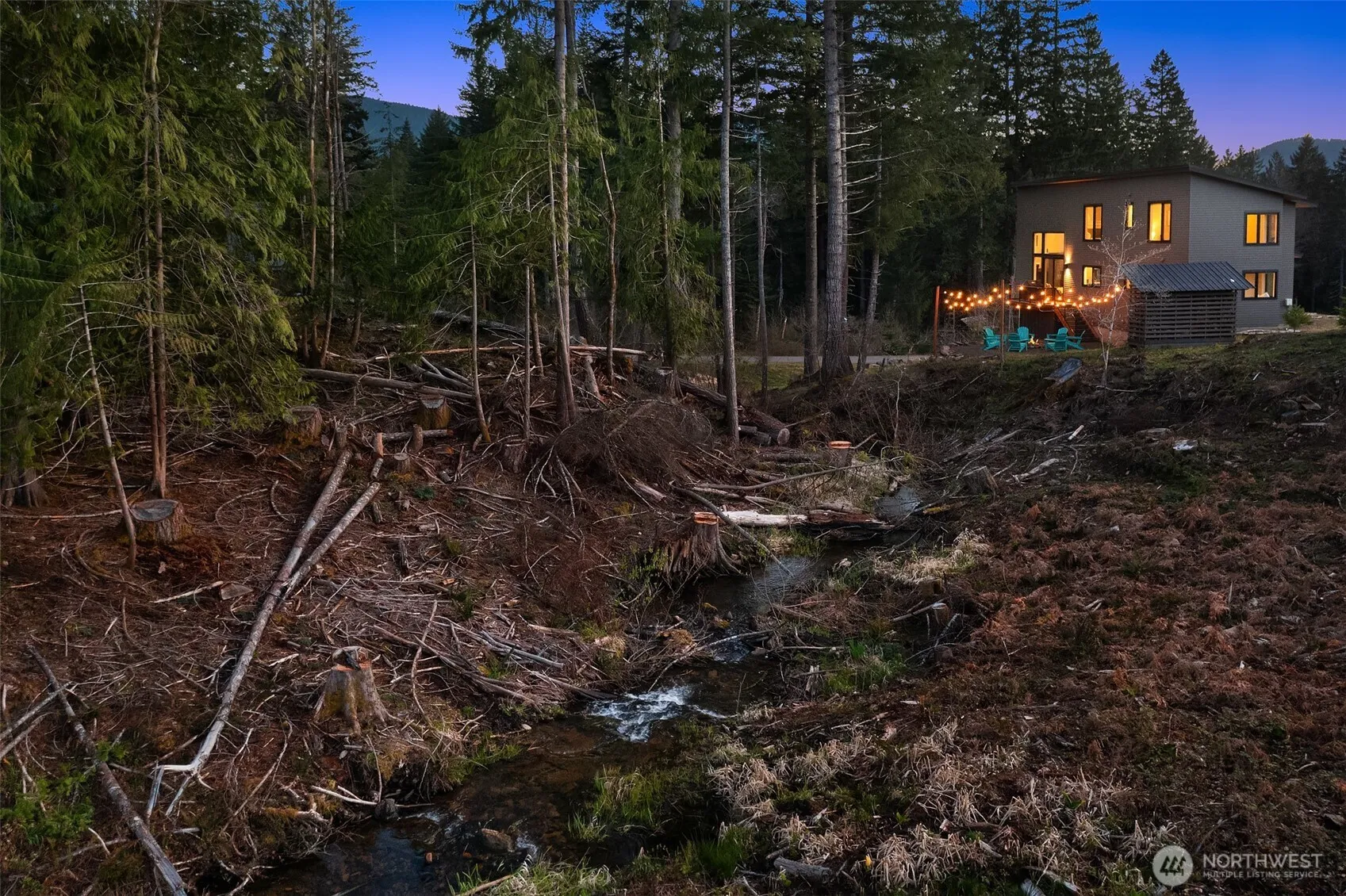 Welcome to the Creekside. Built in 2021, this immaculate modern alpine retreat is located just minutes from town center in Packwood’s premier gated neighborhood, Hideaway. The clean architectural lines and advanced building materials offer the perfect juxtaposition with the rugged natural beauty of Mt. Rainier and the ever-babbling creek safely flowing past the firepit gathering spot. Inside, you’ll love the stunning granite slab as the focal point of the open kitchen and dining area. The seamlessly connected great room features a towering two-story wall of glass looking West down the Cowlitz River Valley and a tremendously efficient Quadra-Fire wood burning fireplace. Both the main level bedroom and second level bedroom offer breathtaking views of Mt. Rainier. The spacious bunk room offers a flexible sleeping area for all ages. A tuck-under garage is ideal for storing your outdoor recreation equipment and includes an EV charger for you or your guests to reenergize before enjoying another adventure in the Gifford Pinchot National Forest. Pre-inspected and offered fully furnished, this home is the perfect turn-key STR with which you can realize a swift return on investment as the peak summer season approaches for international visitors to Mt. Rainier National Park. Located only 25 minutes from the National Park and White Pass Ski Area, the Creekside is your base camp to the Cascade Mountains.
