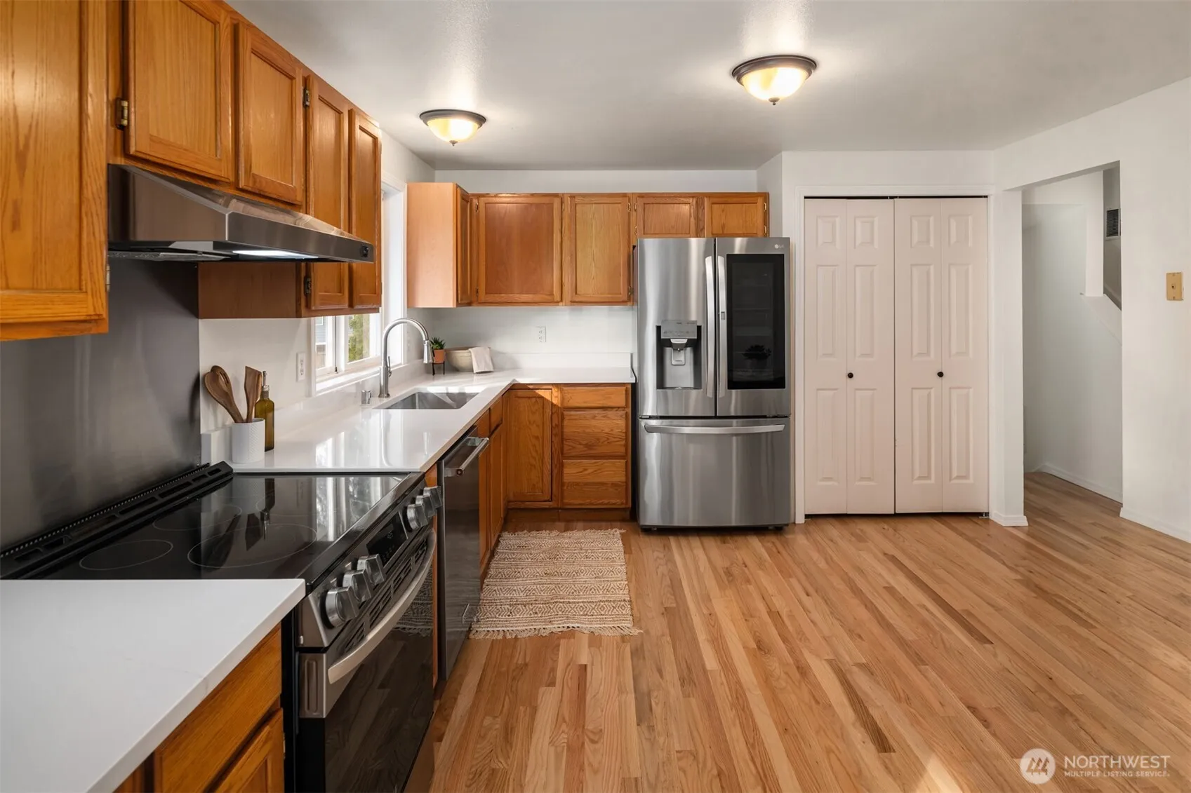 Located at the end of a cul-de-sac in the English Woods community, this move-in ready home offers a functional layout and numerous recent updates. The main level features a living room that flows through the dining area into the kitchen and out to the back deck, creating a connected layout for everyday living and gatherings. A lower-level family room provides additional space for entertainment, recreation, or a home office. Interior updates completed in 2026 include refinished hardwood floors, new carpet, fresh interior paint, refinished kitchen cabinets, quartz countertops, an updated bathroom, and a new sliding glass door leading to the backyard and deck. Additional improvements in recent years include a roof replaced in 2020, solar panels installed in 2021, crawlspace improvements in 2021, LifeProof vinyl plank flooring installed throughout the lower level in 2020, gutters with a leaf filter system installed in 2022, and a gas fireplace insert added in 2024. Outdoor features include a deck built in 2024 overlooking the large fully fenced backyard, outbuildings, a fire pit and space for outdoor activities, gardening, or entertaining. Conveniently located near local amenities, such as, Top Gun Bar & Grill, shopping and dining at South Hill Mall and Sunrise Village, and outdoor recreation at Frontier Park and Spanaway Lake Park.