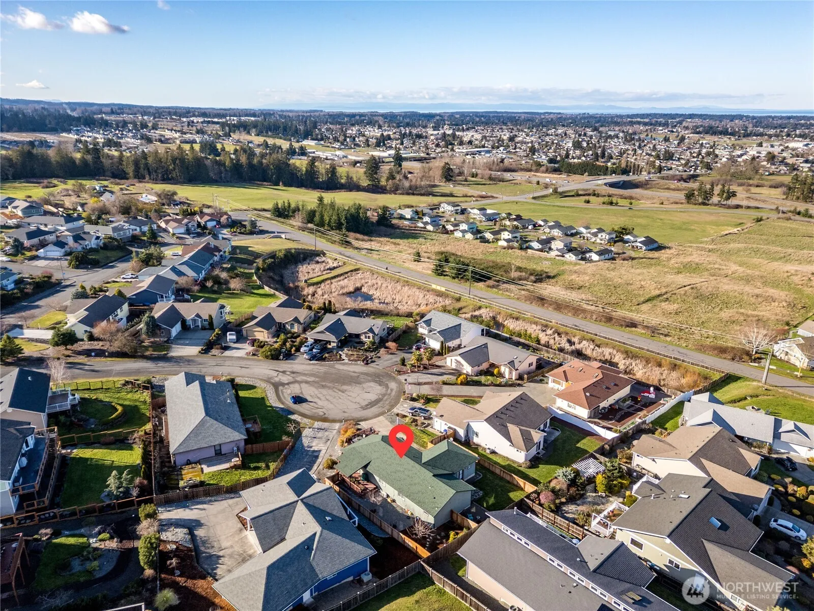 Beautiful 4 BR plus den/office home with water views on a quiet cul-de-sac in Emerald Highlands. Great room concept with comfortable living room open to well-equipped kitchen w/large peninsula counter and bar seating. Two decks to sit and enjoy the beautiful surroundings and views: one off the front with views to the Strait of Juan de Fuca and Canada and another that is partially covered, offering great privacy. Three newer ductless heat pumps in addition to zoned heat. Newer composition roof installed. 4th BR has an interior door and a door to the exterior. Fantastic fully fenced back and side yards with fruit trees, sitting areas and beautiful landscaping. Garage is for storage only – parking is in driveway. High speed internet through Astound Cable. Served by Sequim city water and sewer. Great neighborhood, less than 5 minutes from schools, shopping, YMCA, etc.