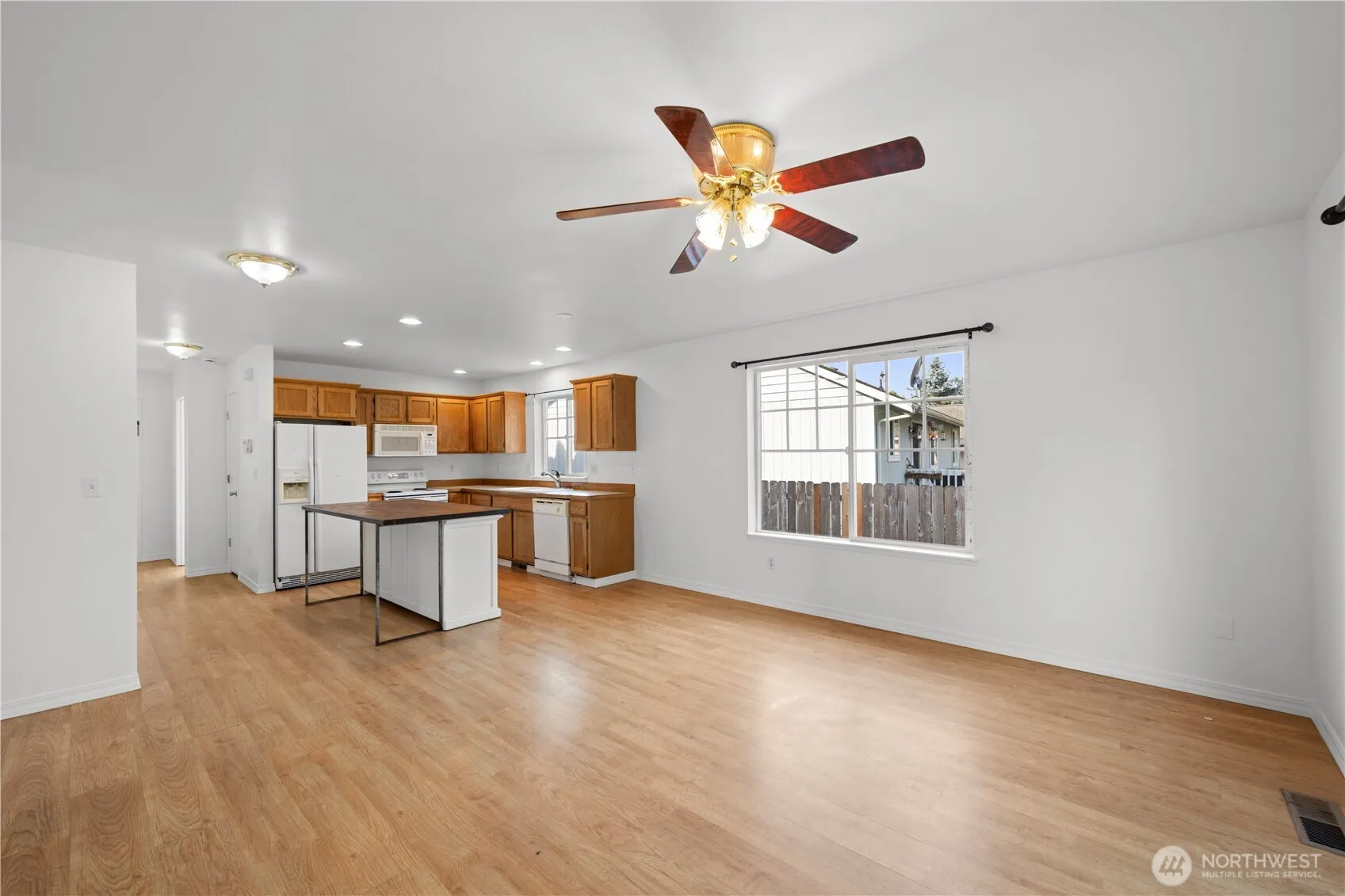 Charming 3 bed 2 bath rambler featuring laminate hardwood floors, a spacious kitchen with center island and open concept living area. Nice primary suite with walk-in closet plus two additional bedrooms and another bathroom. Enjoy the large covered back deck and fully fenced backyard, perfect for entertaining. Recent updates include a newer roof, crawlspace redone, and a new furnace with upgraded filter box. The neighborhood also offers a gated RV parking area. Conveniently located near I-5, schools, restaurants, and the local college, making commuting and daily errands easy. FEMA flood insurance required. Preinspected.