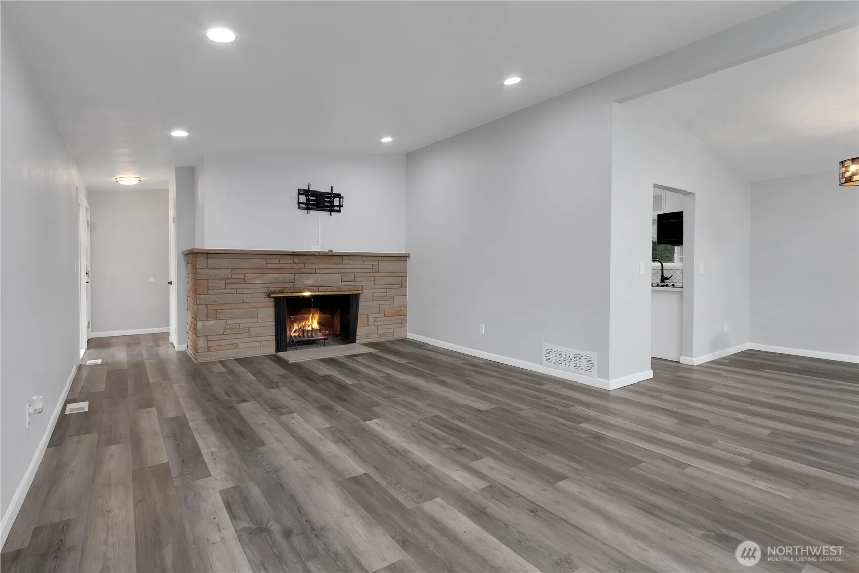 Beautifully remodeled 3-bed, 2-bath 1958 rambler on a quiet, secluded cul-de-sac just minutes from Puyallup and Federal Way. Situated on a fully fenced .42-acre lot with mature landscaping, including fig, cherry, and plum trees, plus vibrant gardens front and back. Inside features a fully finished basement with additional family room and office, custom tile work, quartz countertops, large natural stone sink, and soft-close cabinetry. Abundant natural light flows through skylights, sliding glass doors, and a wall of windows, highlighting a cozy wood-burning fireplace. Full remodel completed in 2023. Major upgrades include new hot water heater (2023), PEX plumbing (2022), updated electrical and panel, LED lighting, furnace with UV air purifier (2021), central A/C, whole-house generator, new septic (2023), sump pump (2026), Leaf Guard gutters, and energy-efficient windows (2022). Modern stainless and black appliances added in 2023, including craft-ice refrigerator and LG Washtower. Extra-wide driveway, 2-car garage with quiet opener, and RV parking with full hookups. Covered patio and full-size attic add flexibility. A rare blend of privacy, charm, and modern upgrades in a peaceful setting.