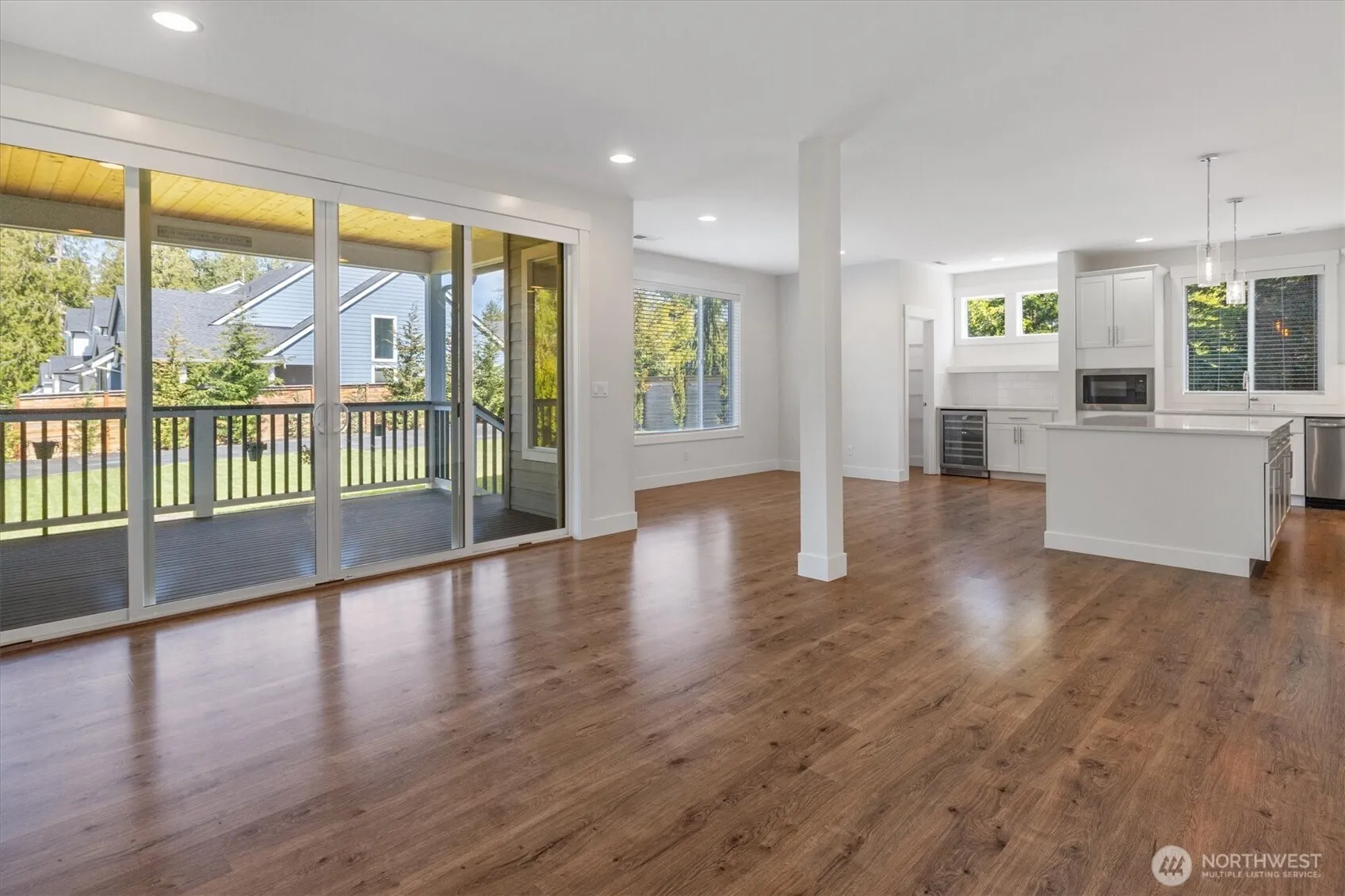 Beautiful one-owner home in desirable Maple Grove Estates on a spacious, sought-after corner lot. Situated on a quiet dead-end street this Craftsman-style home has meticulously landscaped lawns with built-in sprinkler system and an Arlo security system featuring 11 cameras on the exterior – all will remain with the home. A den/office off the entry welcomes you to the capacious interior. Well-appointed open concept layout features a bright living room housing a gas fireplace + full height stone surround, custom built-in shelving and a slider to the covered back deck. In the kitchen you’ll find soft close cabinetry, quartz countertops, stainless steel appliance package, beverage fridge and large center island. A conveniently located main level bath has a walk-in shower with tile surround. French doors lead to the generous primary suite with a spa-like ensuite boasting a soaking tub, two separate vanities, tile walk-in shower and walk-in closet. An additional full bath on the upper level has tile floors, tile surround in the shower and dual sink vanity. Two additional bedrooms also feature walk-in closets. Upper floor utility room conveniently features an always sought after sink, cabinetry for storage and ironing shelf that folds up for added space. The covered deck with TV outlet and fireplace is perfect for outdoor entertaining. Step down from the deck onto the large patio overlooking the sizable lawn and garden space with an outdoor shed for added storage potential.