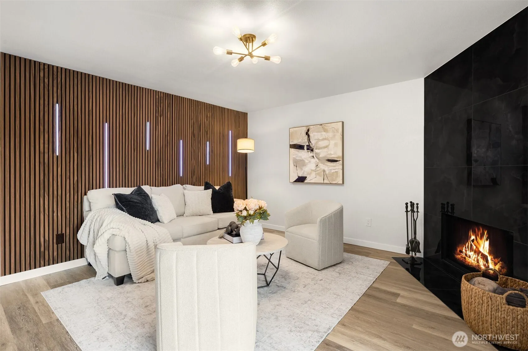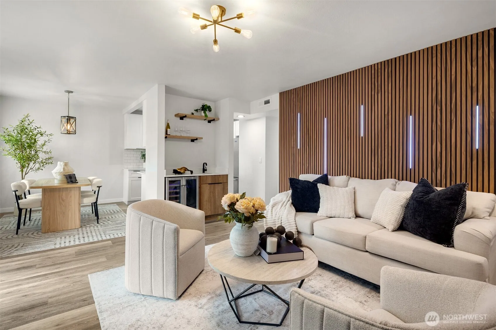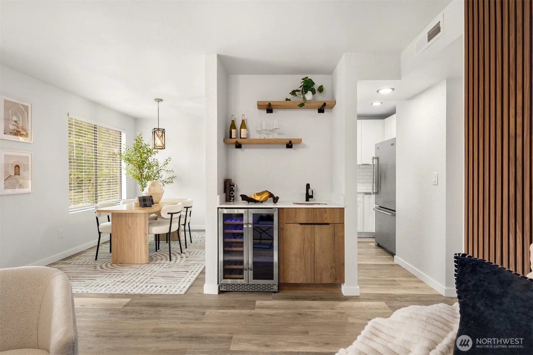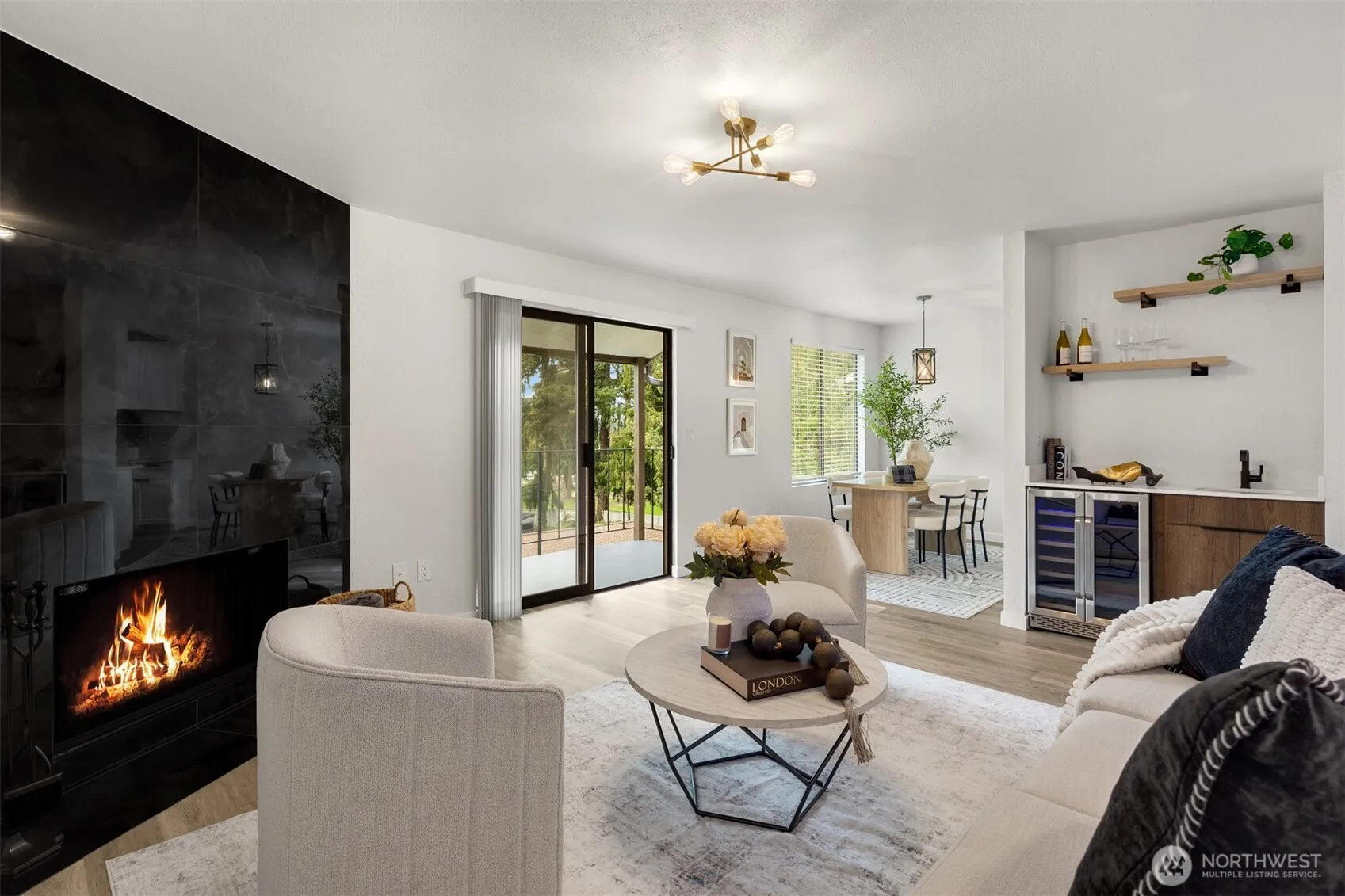 Welcome to this beautifully remodeled top-floor condo in Kent, offering the perfect blend of style, comfort, and functionality. This spacious 3-bedroom, 2-bath home features a fantastic layout with high ceilings and large windows that fill the space with natural light, creating a warm and inviting atmosphere throughout. Enjoy peaceful top-unit living with added privacy and quiet. The fully updated kitchen showcases brand-new soft-close cabinets, modern countertops, and all-new appliances, thoughtfully designed for both everyday living and entertaining. The home also features wonderful new flooring and fresh paint throughout, giving it a clean, cohesive, move-in-ready feel. The bathrooms have been completely renovated with new ceramic tile, stylish vanities, and updated fixtures. Retreat to the spacious primary suite featuring a large closet and a beautifully updated bathroom, offering comfort and privacy. The living room is a true highlight, featuring a designer accent wall, a cozy wood-burning fireplace, and a wet bar—perfect for relaxing or hosting guests. Step outside to your private balcony with extra storage. With its tasteful upgrades, functional layout, and serene setting, this condo is a standout opportunity in a convenient Kent location.