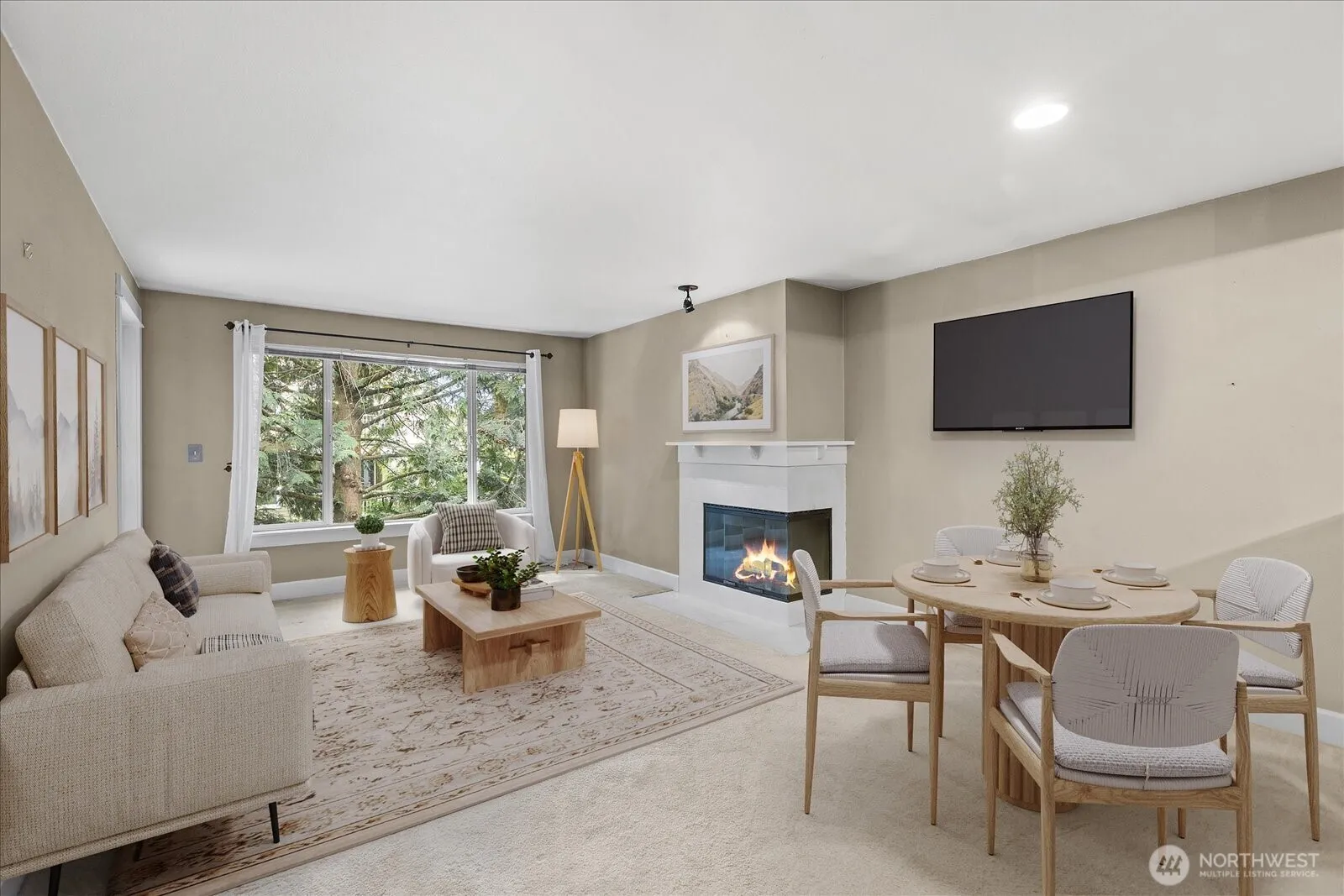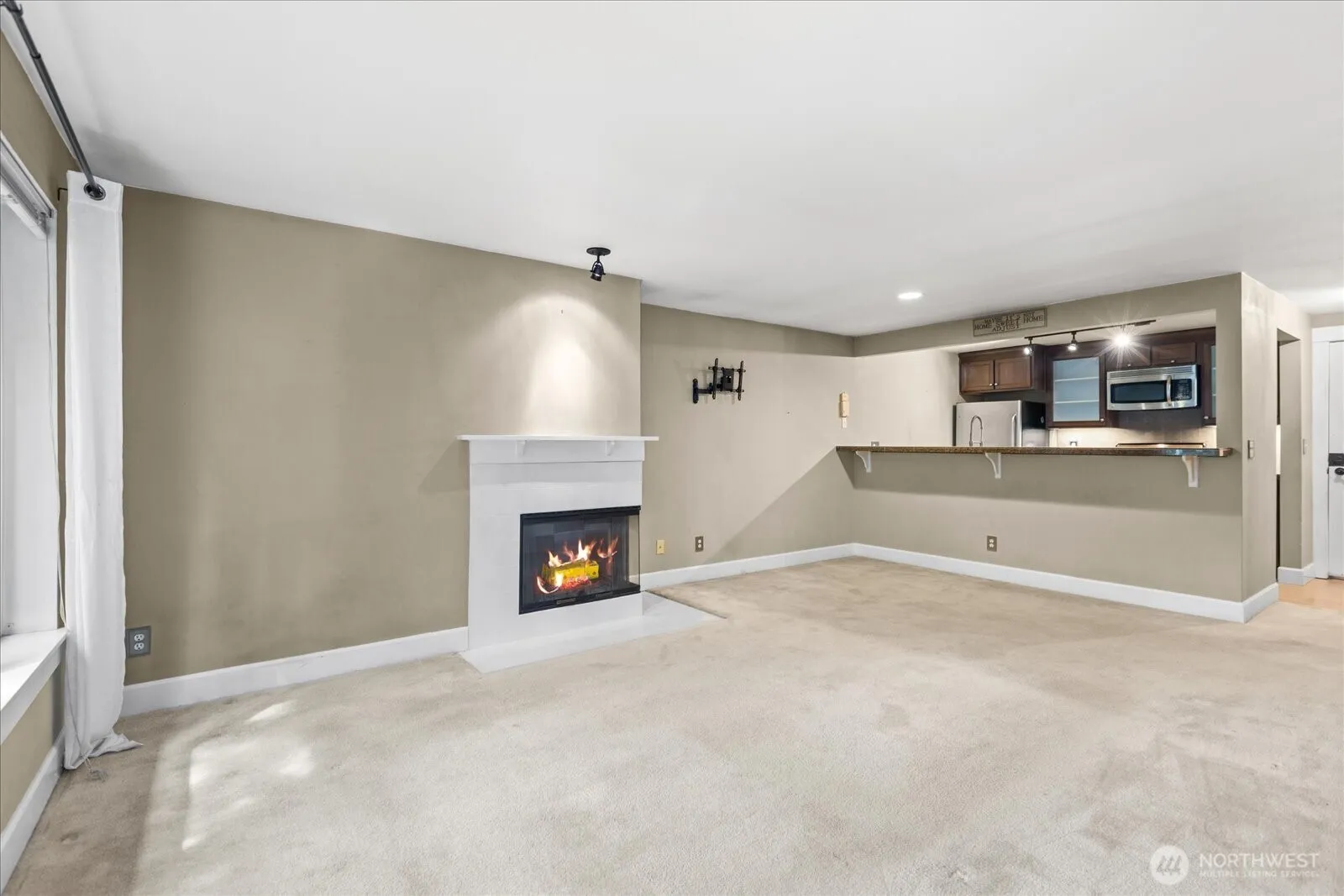 Set in the city, but tucked away in nature, the Cove at Veridian is a nearly 5 acre community of landscaped walking trails, gardens, and dedicated pet areas. This top floor corner unit is tucked away, offering incredible privacy and convenience that is rarely found in Seattle. The floor plan lives large, the open living room has a wood burning fireplace, and the kitchen has eating space at the bar and plenty of room for a separate dining space. The deck and primary bedroom are hidden in complete privacy by the tree canopy. Residents enjoy a modern clubhouse, indoor hot tub, heated outdoor pool, fitness center, yoga studio, and private access to Bitter Lake Park. Secure parking garage with the best assigned parking space available (surrounded by walls!) and plenty of guest parking. No Rental Cap, amazing community, on-site manager, bus line, and future Light Rail opening near by make this a perfect spot for just about anyone! HOA covers water, sewer, garbage, and is managed well. Don’t miss the opportunity to make this place your own! Virtually staged.