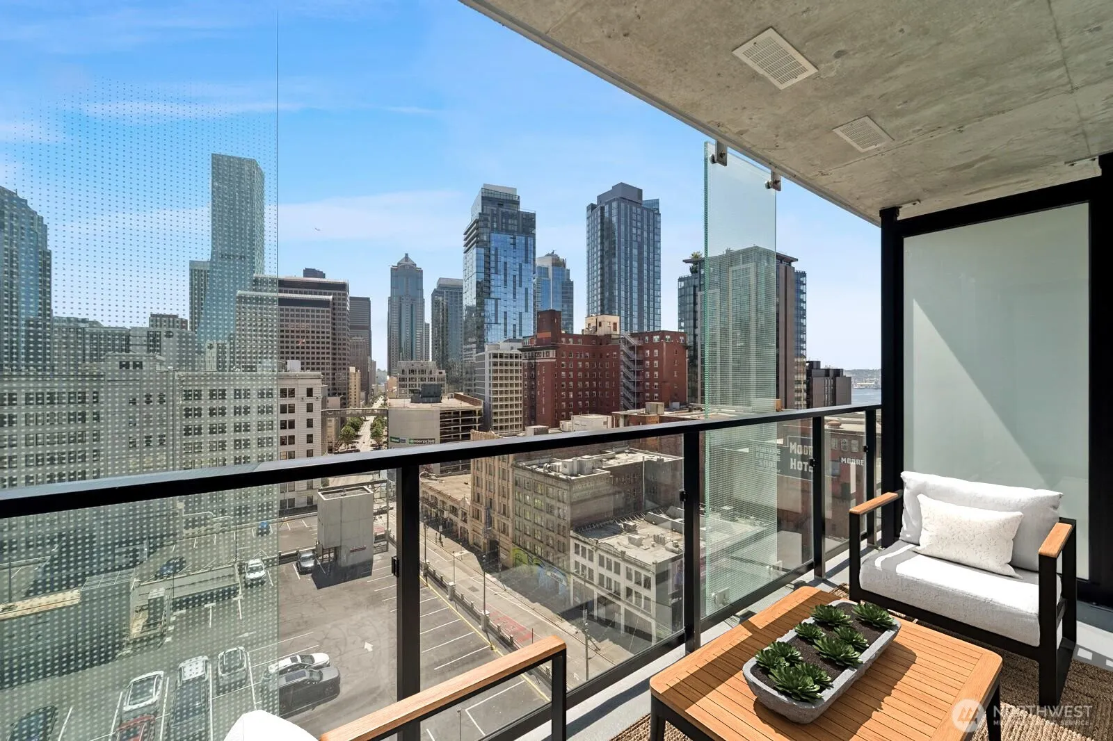 Perched on the 11th floor at First Light, this south-facing 1-bedroom showcases stunning downtown skyline views through dramatic wall-to-wall triple-pane windows that bathe the home in natural light. A thoughtfully designed, flexible layout offers generous living, dining, and sitting areas ideal for both relaxing and entertaining. Step onto the expansive 74 SF terrace—perfect for alfresco dining or summer evenings above the city. The gourmet kitchen features sleek B&B Italia cabinetry paired with premium Miele appliances, including a gas range. Unwind in the spa-inspired bath, complete with a deep soaking tub and glass-enclosed walk-in shower. First Light is located at 3rd & Virginia, just north of Pike Place. Ideally positioned at the intersection of Belltown, Downtown, and South Lake Union, it offers residents unparalleled access to Seattle’s top attractions, along with breathtaking views of the city skyline, Puget Sound, and the Olympic Mountains. Residents enjoy a five-star amenity package, including a 24-hour concierge, professional management team, a secluded relaxation garden, a state-of-the-art wellness and fitness center, a yoga studio, and a stunning 25-meter lap pool with panoramic views of Mount Rainier, Elliott Bay, and the Space Needle. Additional perks include a bike clubhouse, pet area, and outdoor terraces. Possibility to purchase a parking space. inquire for more info!