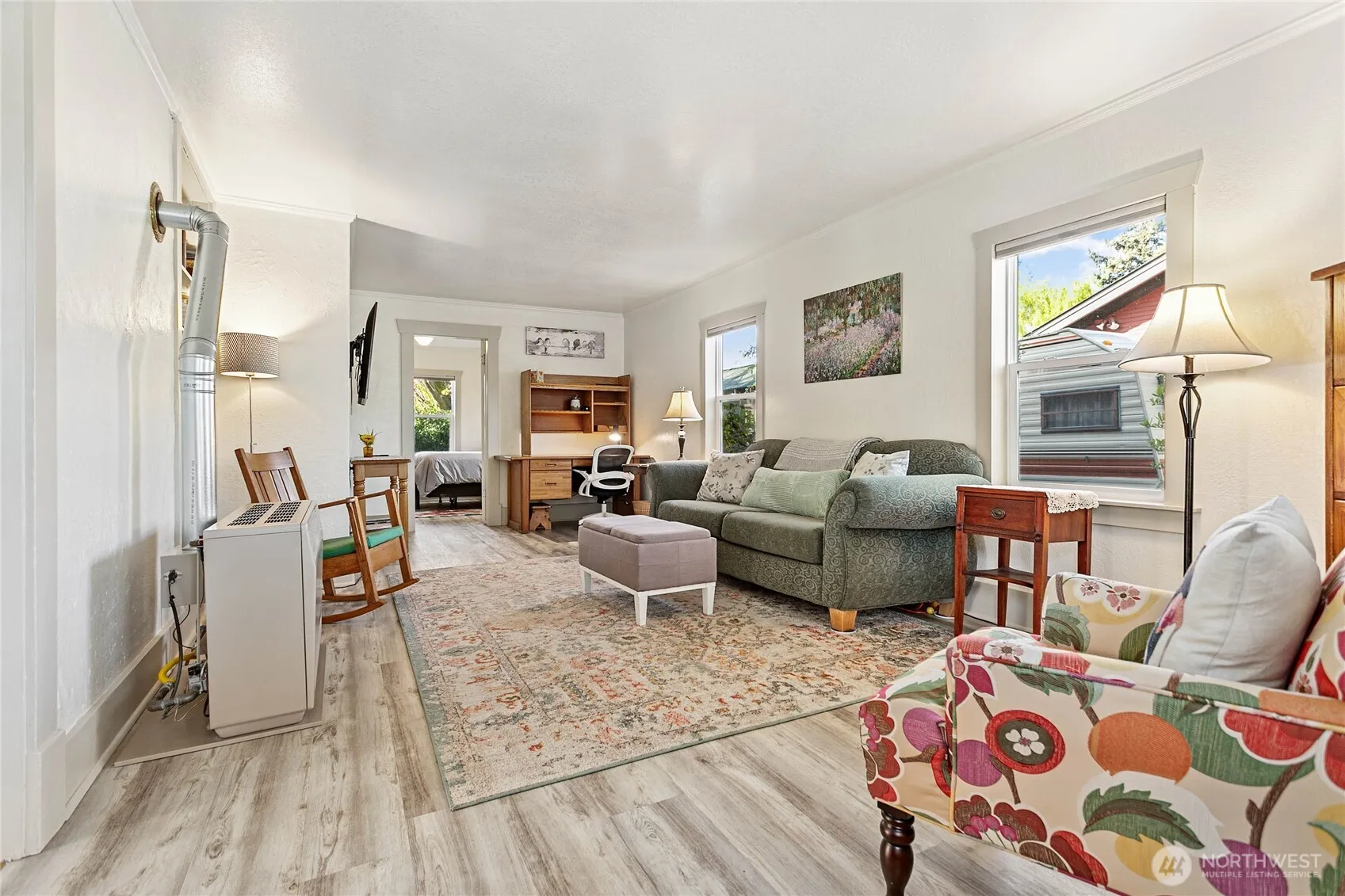 This delightful 2-bedroom Craftsman sits on a generous, level lot in the heart of the Columbia neighborhood. A welcoming covered front porch invites you into a home rich with vintage charm, featuring classic built-ins, storm windows, and a relaxing soaker tub. The bright and cozy interior offers comfortable living spaces and a sweet breakfast nook, perfect for everyday living. Outside, enjoy a large, flat, partially fenced backyard with endless possibilities, complete with a back deck that gets great morning sun to enjoy a cup of coffee, and a detached storage building. A long driveway provides ample off-street parking. Many updates have been done for you that include new roof 3 years ago, new hot water heater, new freestanding heater, new electrical panel, some new windows, plus additional work inside. A partial unfinished basement, with a separate entrance, adds valuable flexibility for storage, hobbies, or future expansion. Ideally located within walking distance of local breweries, shops, dining, parks, trails, and green space. Whether you’re seeking a cozy primary residence, investment opportunity, or a first-time home with room for sweat equity, this charming home in a prime location is not to be missed.