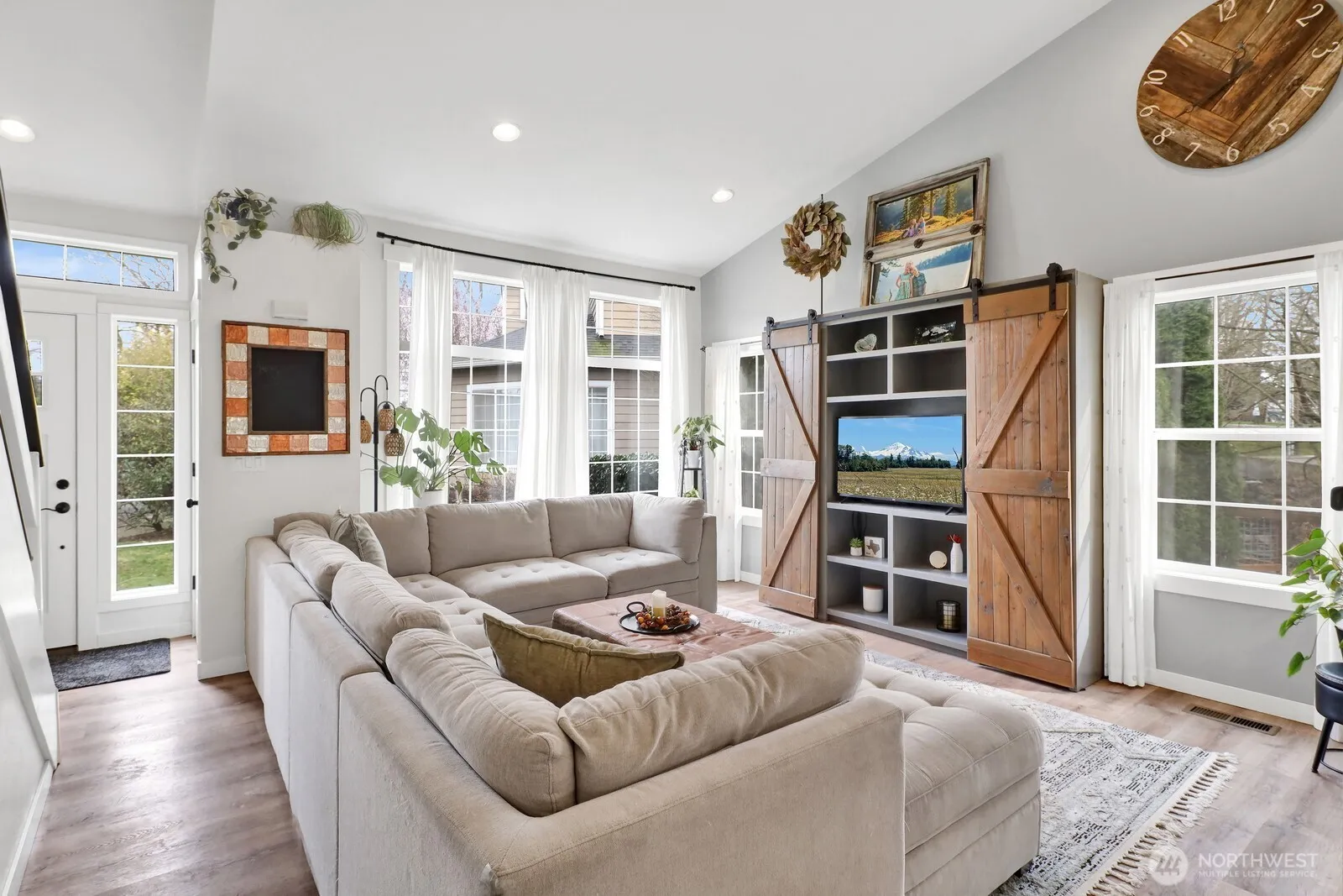 Serenity meets style! Wake up to the peaceful sounds of Fishtrap Creek flowing through your backyard. Tucked in a quiet cul-de-sac across from Million Smiles Playground & Park, with walking trails connecting to Bender Park Fields and nearby Lynden neighborhoods. Large windows capture beautiful creek views, creating a cozy cabin-in-the-country feel—yet you’re just a few steps from downtown Lynden with modern conveniences. Vaulted ceilings and an open layout showcase new LVP flooring and trim, custom cabinetry, subway tile backsplash, and newly tiled bathrooms. Ideal floor plan with a main-floor primary suite, guest bath, and additional bedrooms & bath upstairs. Central AC keeps you comfortable year-round. Enjoy the covered patio and relaxing firepit area by the creek—perfect for unwinding or entertaining. Creekside charm, modern updates, unbeatable location!