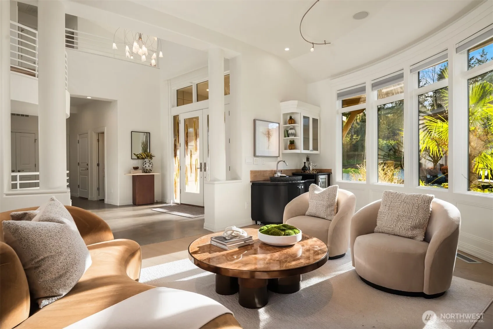 Welcome to Newcastle’s Prestwick enclave within “The Reserve”. This Custom Lochwood-Lozier “Street of Dreams” Home is truly one of a kind. Set prestigiously along the 4th fairway of Oki’s flagship China Creek Course ~ One of two that make up “The Golf Club at Newcastle”. From the moment you arrive, the experience is grounded in tranquility and there’s a sense of calm that’s hard to explain but easy to feel. An impressive sculptural basalt fountain sits underneath intentionally exposed steel beams that welcome you to something truly special. The backyard unfolds into a tiered waterfall pond creating a layered, meditative outdoor environment that feels both curated and organic. Flowing inside, the experience shifts you into an art gallery state of mind. Curved edges, expansive volumes, and beautiful views from all levels. The way light plays through the space begins to feel reminiscent of something more architectural… something more intentional. One experiences a subtle nod to the spatial emotion of Solomon R. Guggenheim Museum in NYC… where structure, light, and movement all become part of the experience. The kitchen anchors connection. The deck opens to the fairway. The home flows in a way that feels both grounded and elevated at the same time. Upstairs, a desired retreat. Downstairs, a full lifestyle oasis. This is more than a home on a golf course. It’s a living environment shaped by design, tranquility, and intention. Welcome home.