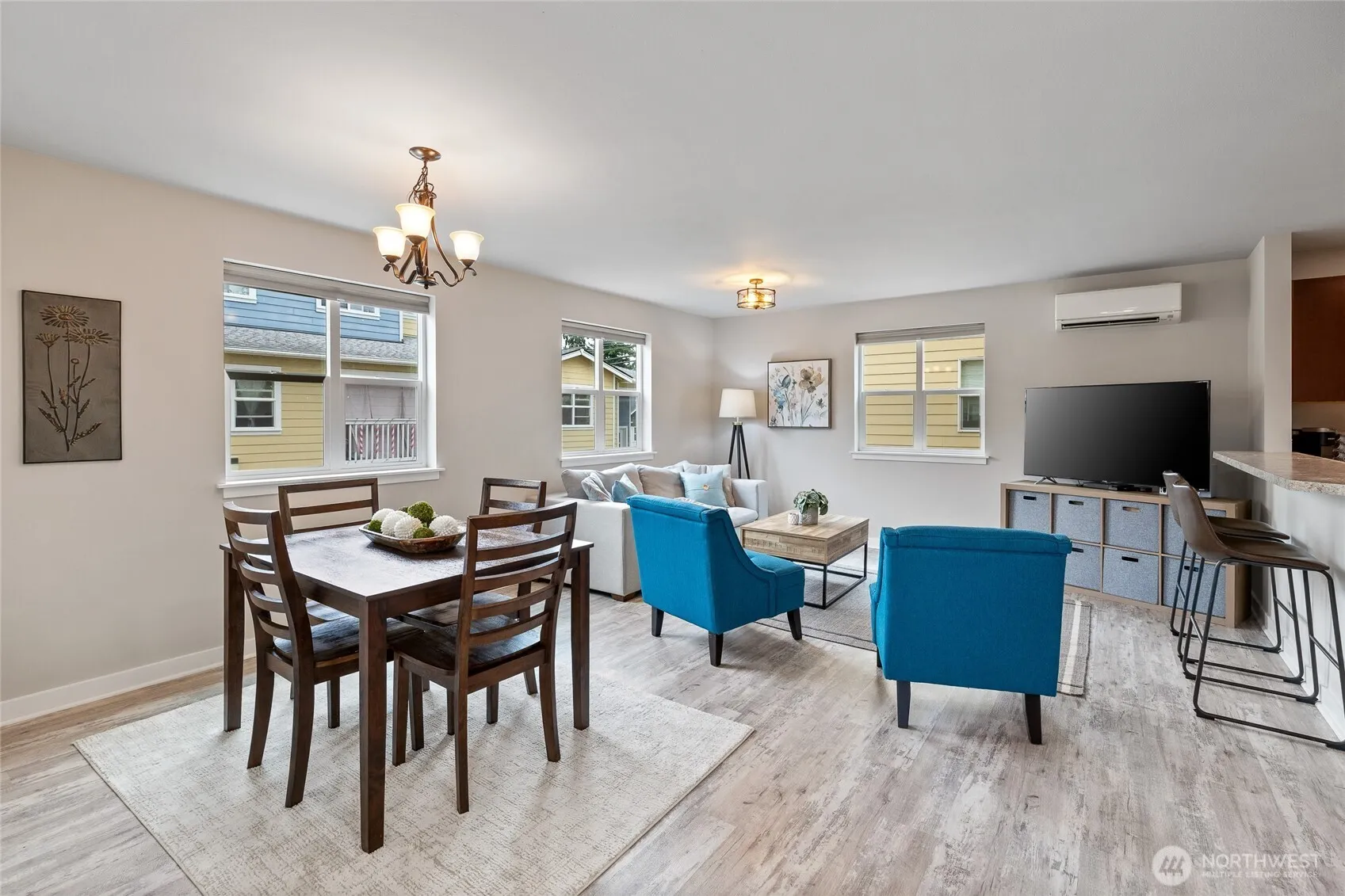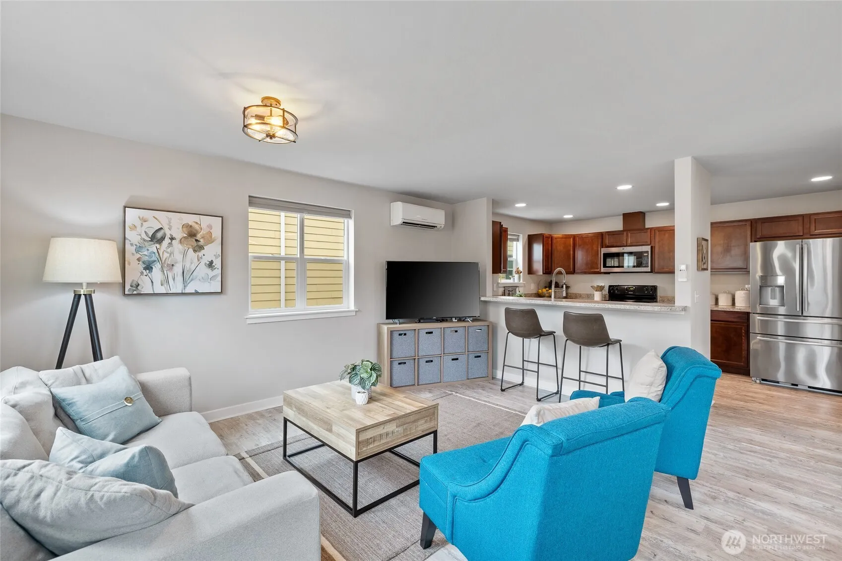 A Delightful Downtown Townhouse that Lives Large ~ Thoughtfully Designed, Stylish & Filled with Natural Light, the seemlessly Integrated Main Floor Living space will become your welcome retreat. The Spacious Kitchen is Well Appointed with Loads of Cabinets, Counterspace, Breakfast Bar, Pantry & Lovely Stainless Appliances. Upstairs finds the Primary Bedroom w/En-suite & Two Additional Bedrooms. With Fresh Paint & Tastefully Updated Fixtures, this home represents a true Move-in-Ready Experience. In the Summer stay Cool Inside with the Heat Pump; head just outside your front door for an expansive lawn & room for plenty of fun! Large 2-car garage w/storage. A Small Quiet Community with only 13 Homes and Conveniently close to Shopping, Library, Parks & Playfields, Plus Easy Commuting & VERY LOW DUES, $136 NO ASSESSMENTS!