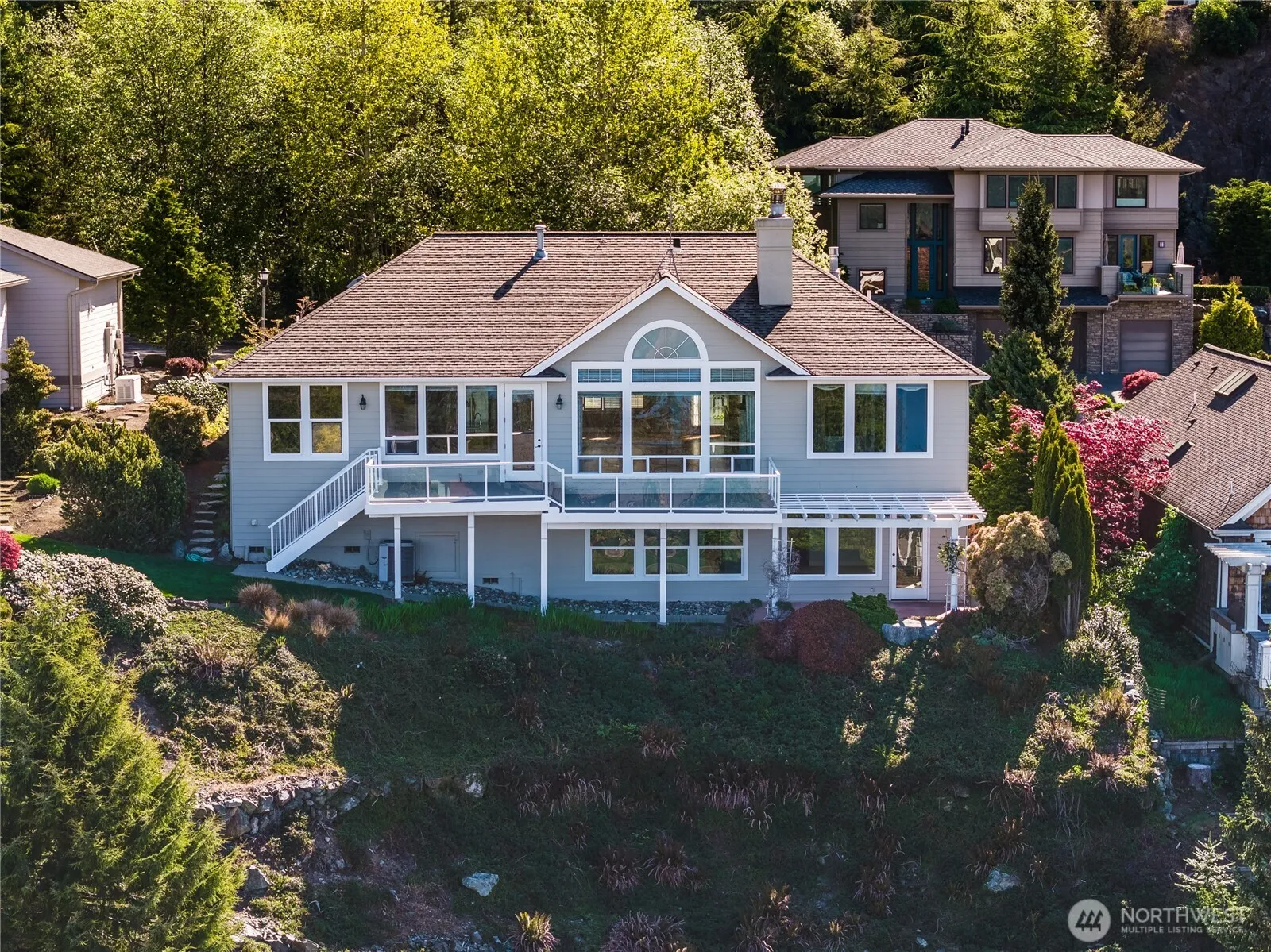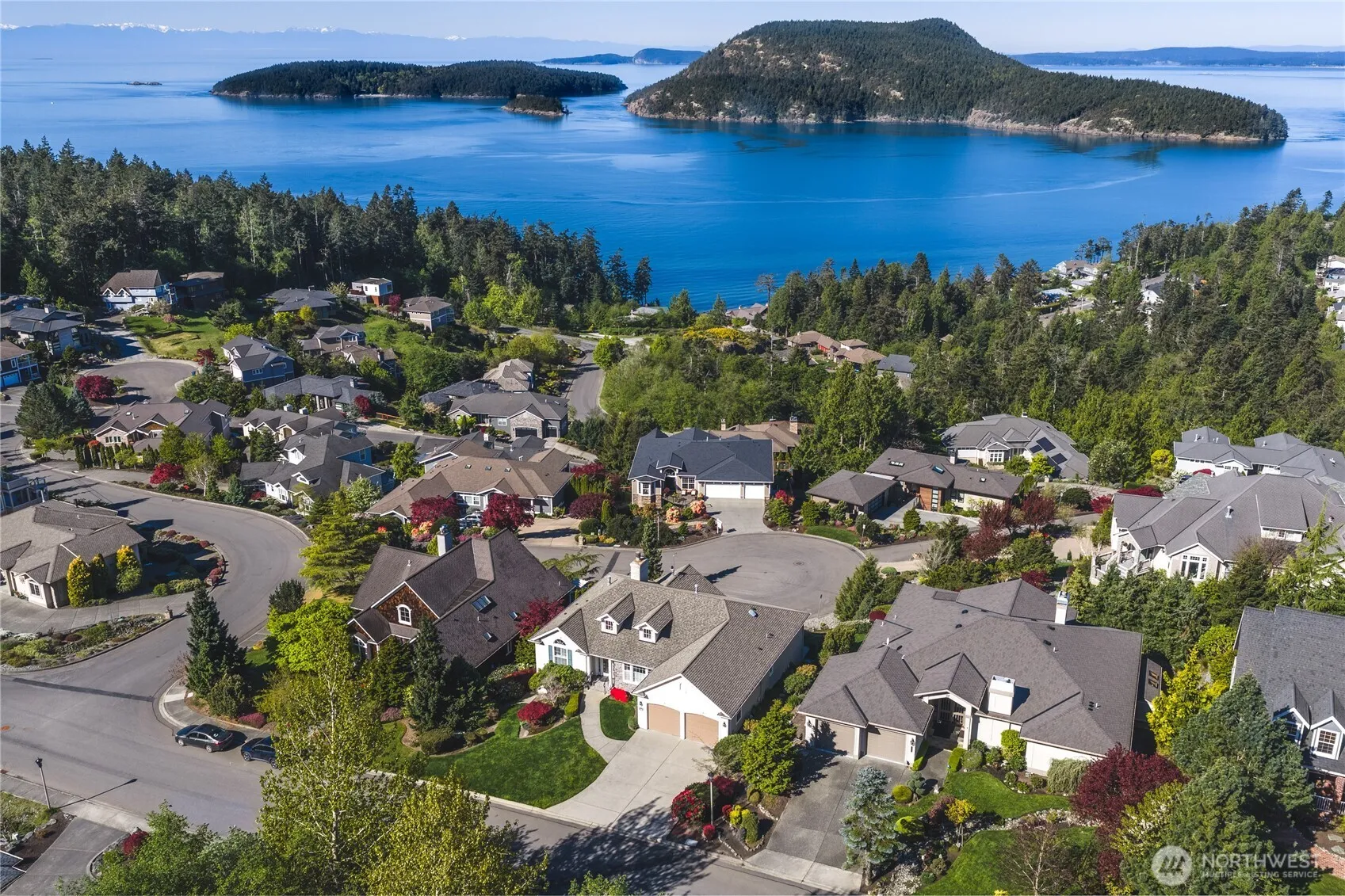 Southwest Marine views that quite simply stop you in your tracks, stretching across Burrows pass and Burrows Island to the San Islands with the Olympic mountains rising in the distance. From the moment you enter, walls of windows frame a constantly changing seascape you’ll never tire of. Ships, local boating traffic and whales pass through not to mention those sunsets! Designed for effortless main level living this beautifully appointed home features dramatic vaulted ceilings, rich hardwood floors and a striking fireplace that anchors the light filled living space. The thoughtfully designed kitchen is a cooks delight with a wall oven plus a six burner Wolf range, granite counters & stainless appliances. Breakfast nook, a private office, laundry and an inviting primary suite complete the main floor. The lower level offers exceptional flexibility with two additional bedrooms, a full bath, spacious family room with gas stub for future fireplace and direct access to the patio for seamless indoor outdoor living. A generous craft or hobby room provides the perfect creative retreat. Quality finishes throughout elevate every space making this home as comfortable as it is captivating.
