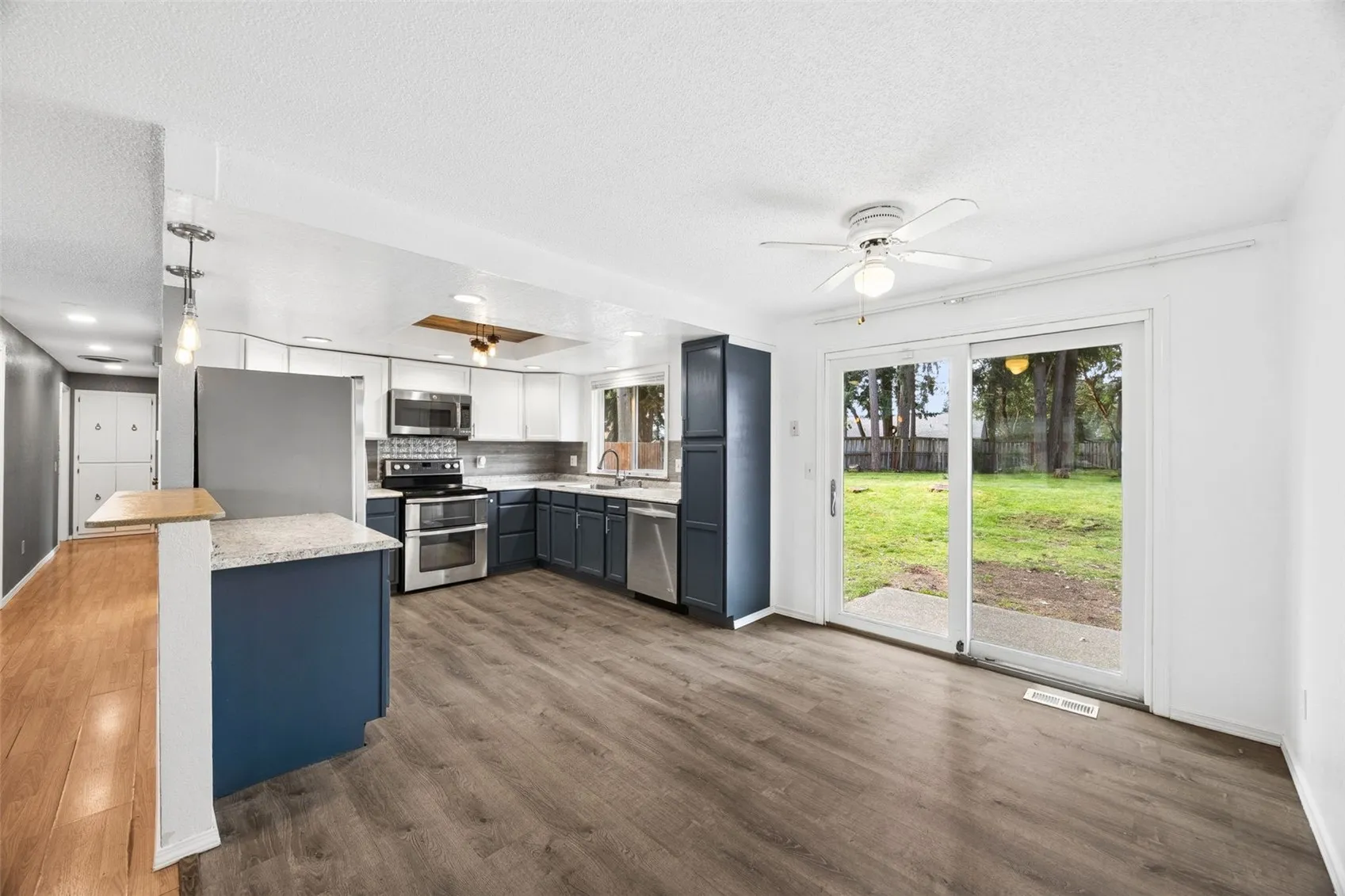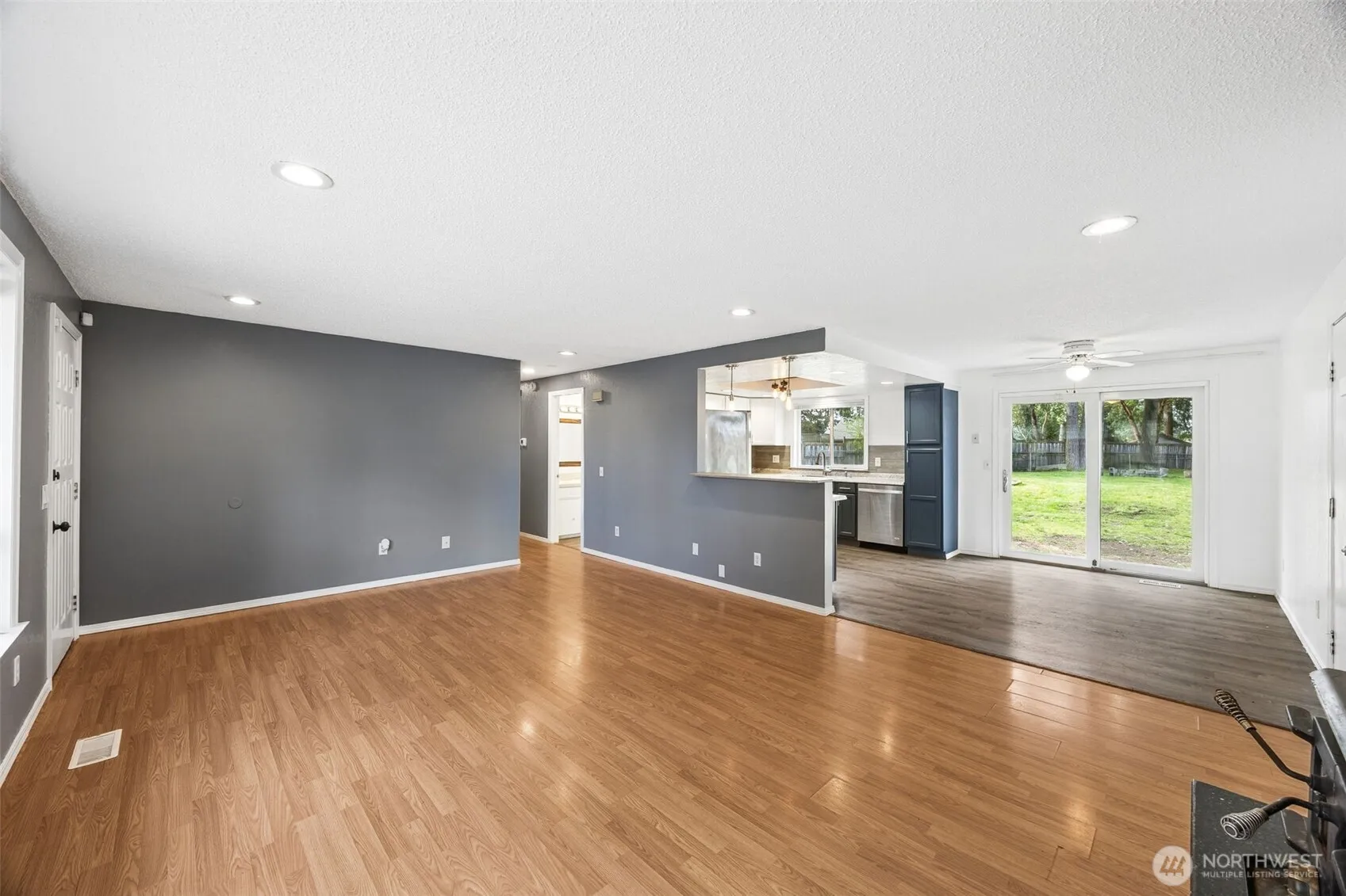 Welcome to this charming rambler located on a spacious .3-acre lot in The Meadows neighborhood. This home boasts laminate flooring throughout. The inviting living room features a cozy wood-burning fireplace and a large window that provides an abundance of natural light. The updated kitchen is equipped with stainless steel appliances, including a double oven, a stylish tile backsplash, and painted cabinets. The primary bedroom offers a closet with custom built-ins and a convenient 3/4 bathroom. Two additional guest rooms provide ample space for guests or a home office, and are complemented by a full guest bathroom. Enjoy the added convenience of a washer and dryer that are included with the home. The extra-large 2-car garage is a true standout, featuring shelves and a workbench for all your storage and hobby needs. Large, fully fenced backyard that includes a firepit, gazebo, shed, garden beds, and a covered patio area – perfect for year-round enjoyment. Additionally, you’ll find RV parking, offering plenty of room for your recreational vehicles. With vinyl siding and forced air heating, this home is both low maintenance and efficient!