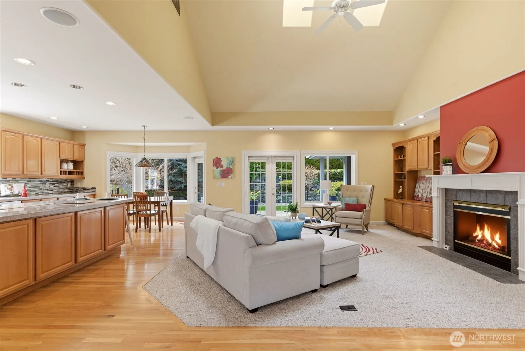 Welcome to effortless Northwest living in this coveted rambler in the heart of University Place. Nestled in the gated community, The Berkshire, quiet streets and sidewalks create a true neighborhood feel. This beautifully maintained home offers exceptional curb appeal with lush, mature, and manicured landscaping. Inside, the open-concept design is elevated by soaring vaulted ceilings and abundant natural light. The heart of the home is the stunning kitchen, featuring an oversized island perfect for gathering, flowing seamlessly into the inviting living area complete with a gas fireplace and custom built-ins. The oversized primary suite is a private retreat, showcasing a fully remodeled 5-piece en-suite designed for comfort and luxury. Plantation shutters add timeless style and privacy. Two additional generous bedrooms, one with gorgeous custom woodwork, are joined by a jack-and-jill bathroom. Thoughtful upgrades to the home include a newer furnace and central AC, ensuring year-round efficiency and peace of mind. Feeding directly into the award-winning University Place school district and ideally located just minutes from shopping, restaurants, and the beautiful Chambers Bay golf course, this home offers the perfect balance of tranquility and convenience. A rare opportunity to enjoy single-level living in one of the area’s most desirable communities.