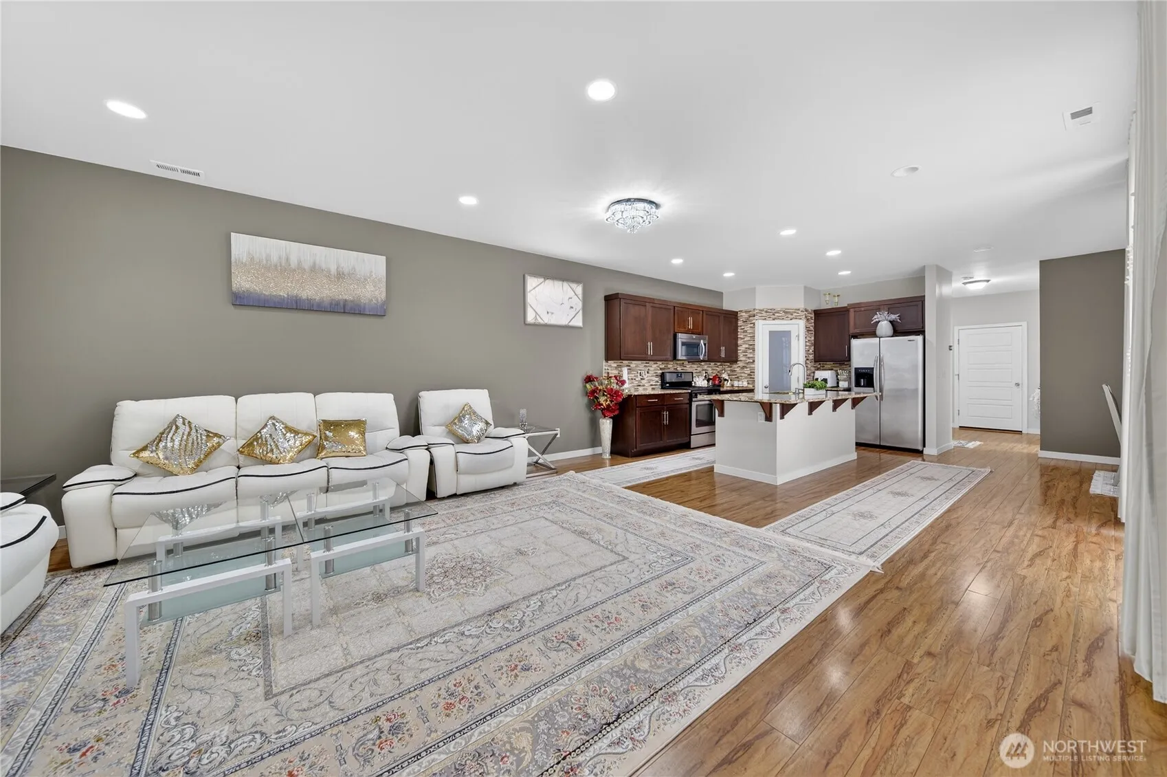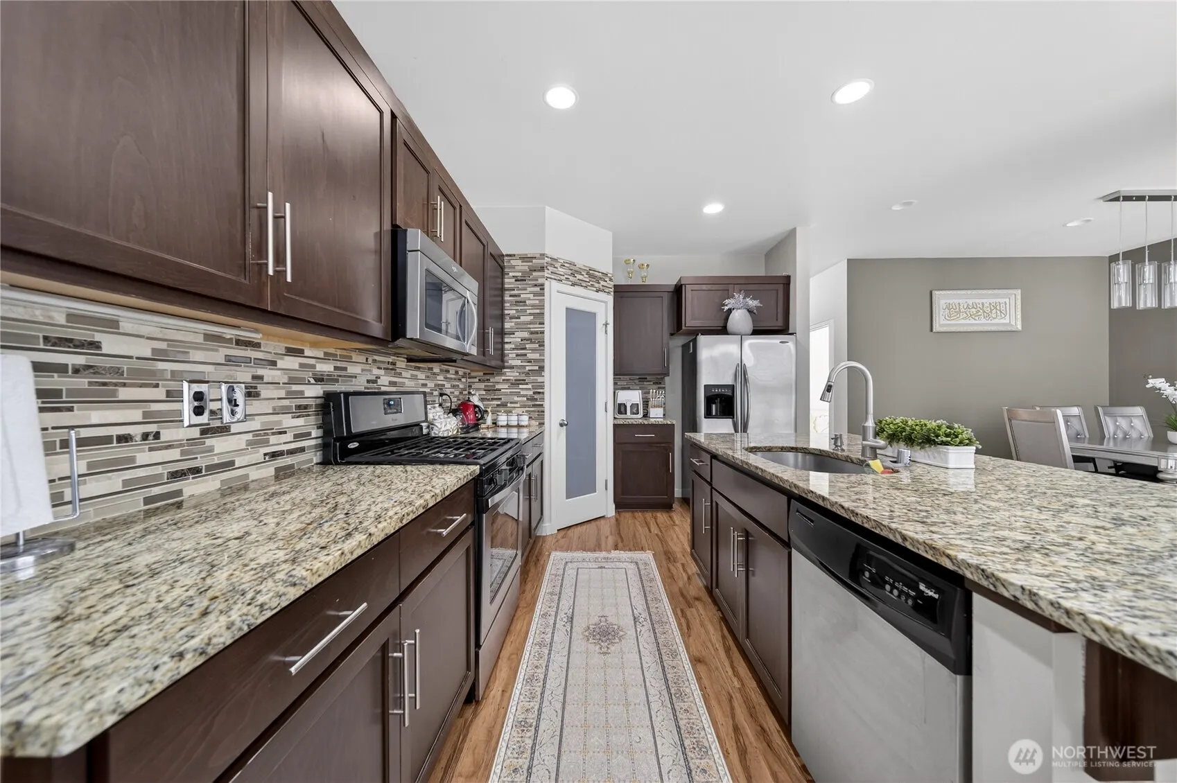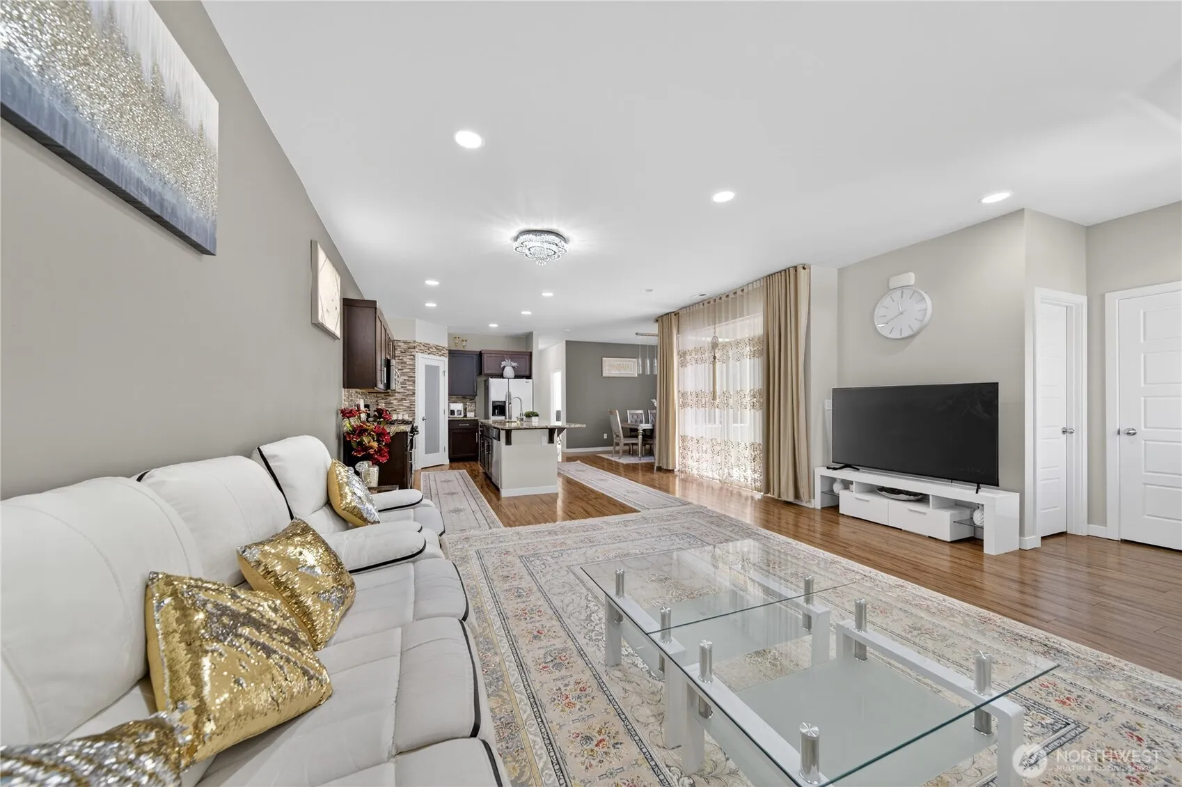 Discover this stunning 5-bedroom, 2.5-bath home with a bonus room in the vibrant Lea Hill community of The Bridges! The open-concept main floor is perfect for entertaining, featuring a spacious living and dining area filled with natural light and high ceilings. Enjoy the outdoor living space that opens to a beautifully paved patio—ideal for BBQs and summer gatherings. The home also offers a generous 2-car garage with plenty of room for storage. Upstairs, you’ll find a large primary suite complete with a 5-piece bath and walk-in closet. The community offers fantastic amenities, including a park with playgrounds and basketball courts—perfect for outdoor fun. Conveniently located just minutes from major highways, shopping, dining, and Trader Joe’s, this home truly has it all!