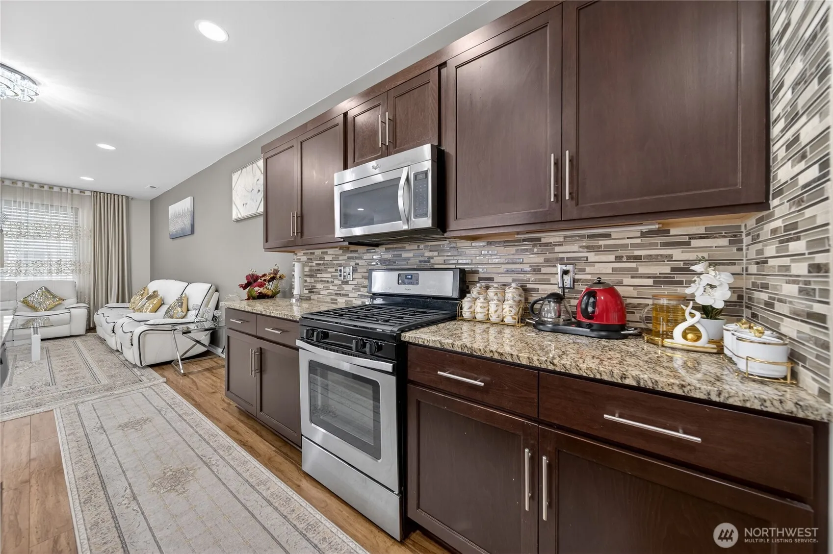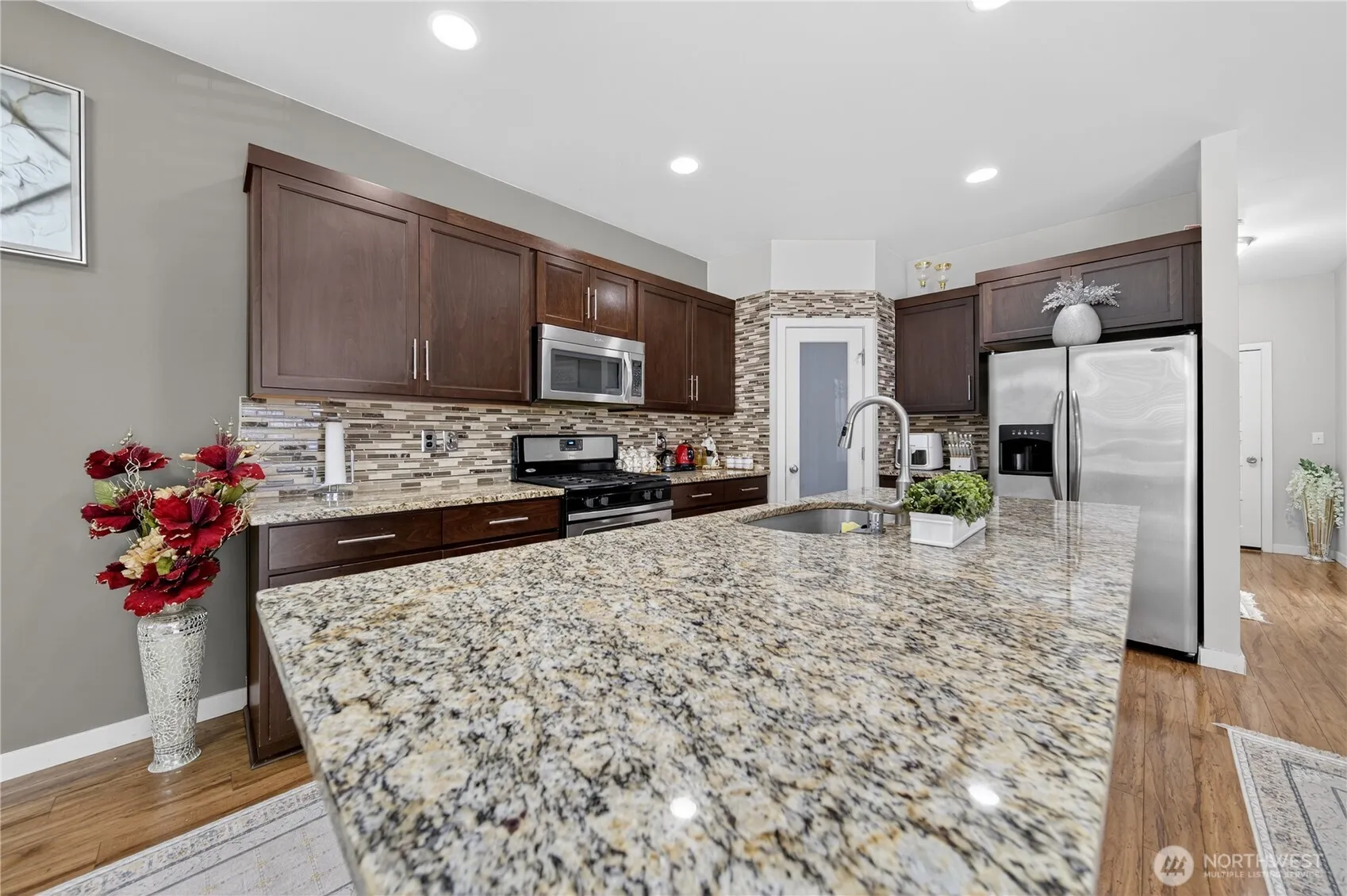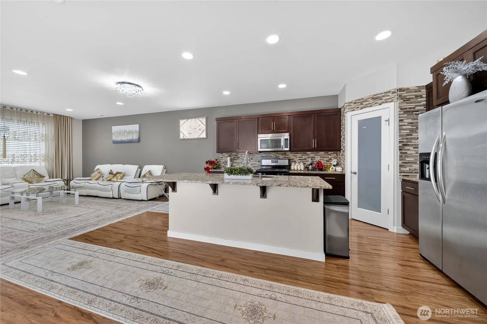 Discover this stunning 5-bedroom, 2.5-bath home with a bonus room in the vibrant Lea Hill community of The Bridges! The open-concept main floor is perfect for entertaining, featuring a spacious living and dining area filled with natural light and high ceilings. Enjoy the outdoor living space that opens to a beautifully paved patio—ideal for BBQs and summer gatherings. The home also offers a generous 2-car garage with plenty of room for storage. Upstairs, you’ll find a large primary suite complete with a 5-piece bath and walk-in closet. The community offers fantastic amenities, including a park with playgrounds and basketball courts—perfect for outdoor fun. Conveniently located just minutes from major highways, shopping, dining, and Trader Joe’s, this home truly has it all!