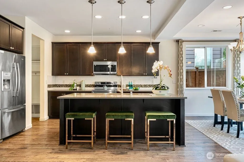 Well maintained 3 bedrooms +Den+ loft +2.5 bath home! Large covered front porch, laminate wood flooring, slab granite counters, Whirpool gold appliance w/gas range, 42 inch upper cabinets and 9ft ceilings on main. Master suite with huge walk-in closet and 5 piece master bath w/ marble counters, large laundry room, 2 big bedrooms, 2nd bath w/marble counters and cozy loft. Air condition. Home was model home in 2015 and included many additional features. New grasses of front and back yard. Walking distance to Green River college.