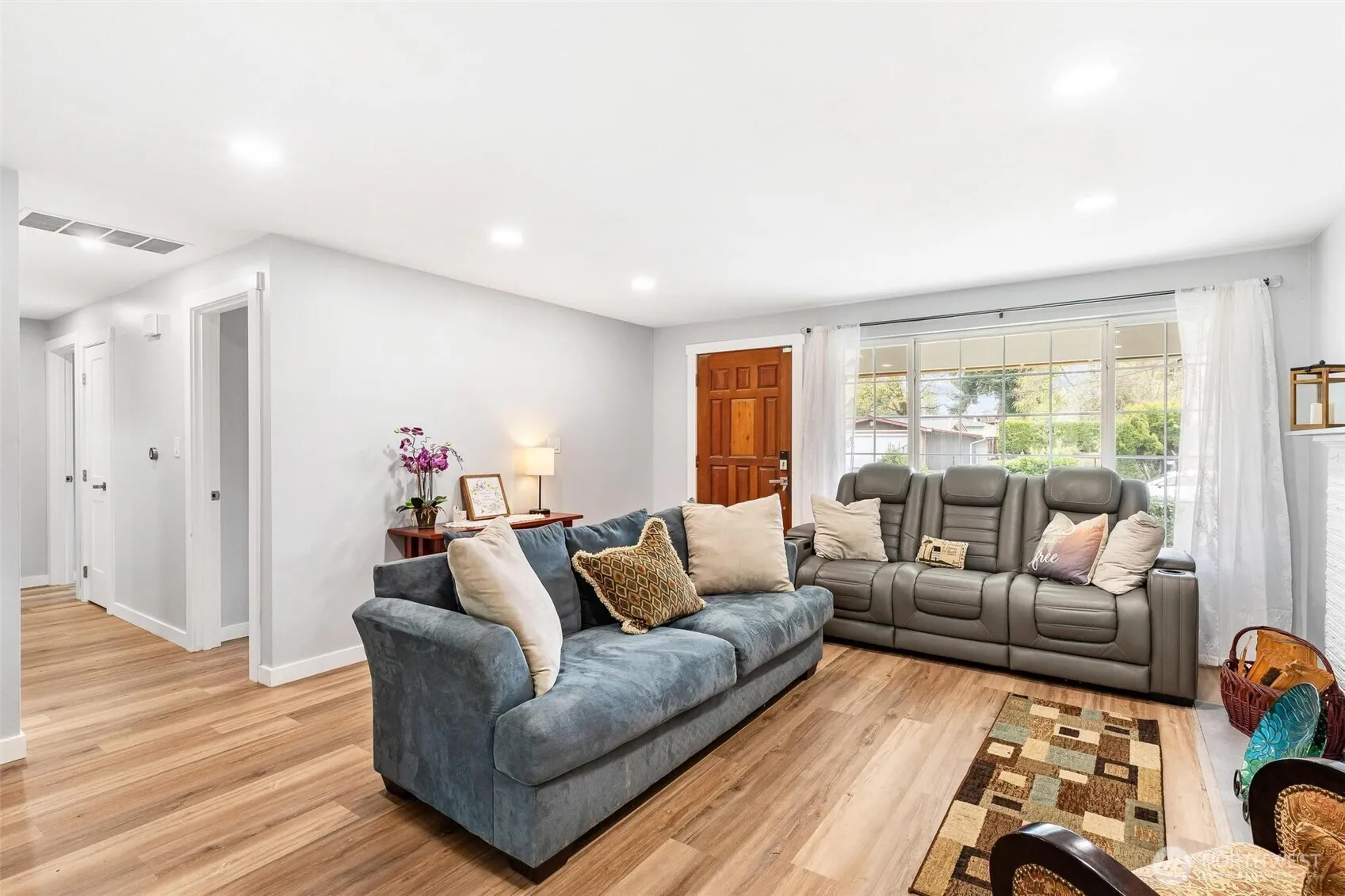 Beautiful opportunity to own a spacious, fully updated one level home offering comfort, style, and convenience. Gleaming new luxury vinyl plank flooring flows throughout, complemented by new doors and millwork along with elegant crown molding details that elevate the home’s refined feel. The stunning front living room welcomes you with a striking fireplace and abundant natural light. The updated kitchen features quartz countertops, stainless steel appliances, and an adjoining dining space, creating a seamless layout for everyday living and entertaining. This sought after four bedroom home offers versatility and functionality, along with an updated bathroom showcasing tile floors and a beautifully tiled shower. Major system upgrades include updated metal roof, new furnace, and tankless water heater, providing peace of mind for years to come. Step outside to your private outdoor oasis featuring a covered deck and hot tub, ideal for relaxing or hosting, along with a peaceful covered front porch that adds charm and curb appeal. Ideally located near Mirror Lake Park, Steel Lake, schools, shopping, dining, and more, with easy access to I-5 and Highway 18 for commuters, this home also includes a one car garage and offers the perfect blend of modern upgrades and an unbeatable location.