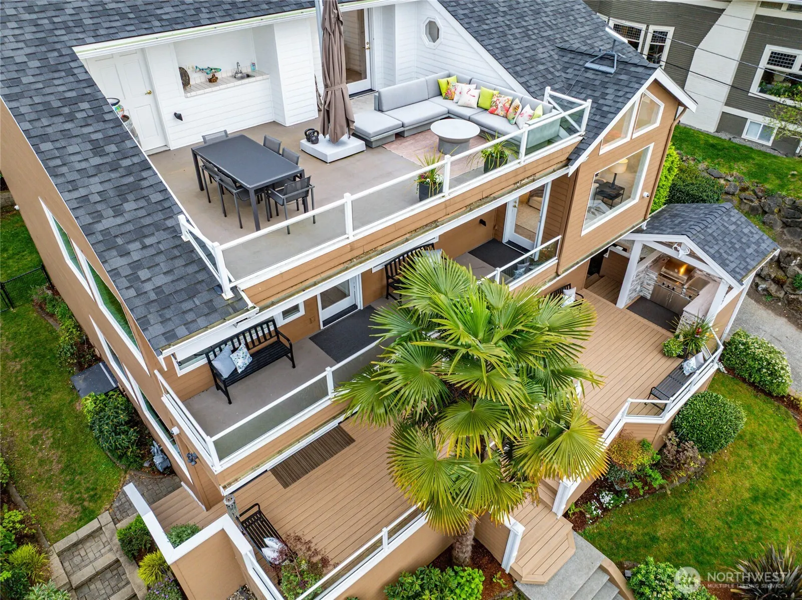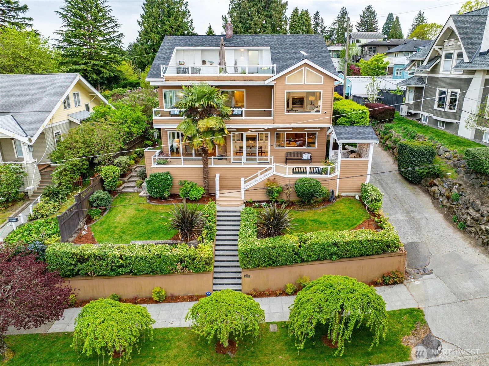 Spectacular view home in coveted North Admiral – a true one-of-a-kind gem offering sweeping, unparalleled panoramic views of Downtown Seattle, Puget Sound, and the surrounding mountains from every floor of the residence. This grand 3BR plus den/office, 4BA home was thoughtfully remodeled between 2018-2019, creating a seamless modern layout with high-end finishes throughout. The luxurious custom chef’s kitchen features walnut cabinetry, imported Italian quartzite counters, and premium Wolf, Sub-Zero, and Bosch appliances. Oversized windows and effortless indoor-outdoor flow frame the breathtaking views while flooding the home with natural light. Step out to the rebuilt AZEK deck with built-in Wolf BBQ and Infratech heaters. The luxurious primary suite is a true retreat with a spa-like 5-piece bath, large soaking tub, skylight, private view deck, gas fireplace, and expansive walk-in closet. Modern efficiency shines with dual high-efficiency Lennox furnaces and Carrier A/Cs, tankless water heater, LED lighting, and upgraded insulation. This smart home includes wired Ethernet, Sonos audio, and CCTV security system. Additional highlights: oversized 2-car garage with EV charger, recently replaced roof, skylights, Hunter Douglas shades, custom California Closets, and meticulously landscaped yard. Located in one of West Seattle’s most desirable neighborhoods, close to highly rated schools and parks. This is a rare opportunity to own one of West Seattle’s most spectacular view homes.