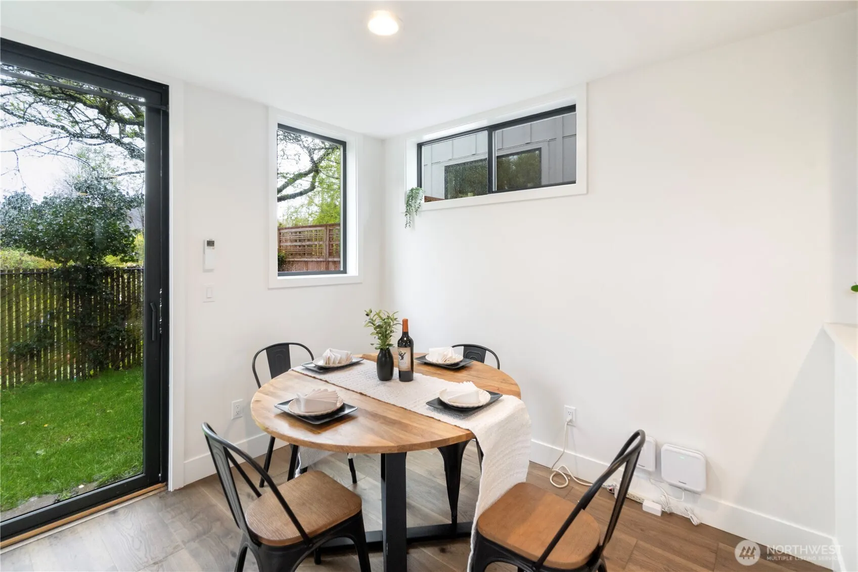Meticulously designed, detached modern cottage-style home with views in Magnolia at an amazing value! This custom home stands all by itself, allowing for maximum privacy, with vistas of the Cascades and peek-a-boos of Seattle’s city skyline. Two bedrooms + office space. Open main level features a large chef’s kitchen with elevated bar seating, a versatile living room complete with a powder room, and large glass sliders leading out to your fully fenced, private backyard! Top floor boasts two bedrooms – the Primary is oversized & has plenty of room for a home office and armoire. Bonus features include A/C throughout, wide plank custom floors on both levels, and a large dedicated parking spot with an EV charger literally next to your front door! Steps from schools, Ella Bailey View Park, and the shops and cafes of the Magnolia Village.