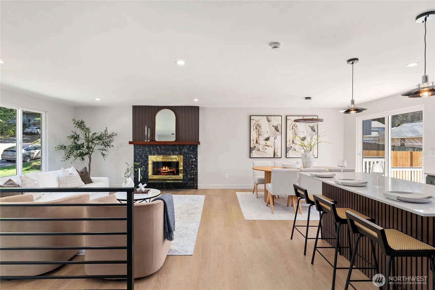 Beautifully renovated and thoughtfully reimagined, this exceptional home offers an elevated blend of modern comfort and timeless design. The residence showcases a refined open-concept layout with a seamless flow between living spaces, enhanced by abundant natural light throughout. The main living area is anchored by a striking wood-burning fireplace, creating a warm yet sophisticated atmosphere. The interiors feature carefully selected finishes and clean, contemporary lines that elevate both style and functionality. Multiple living areas provide flexibility for entertaining, working from home, or hosting guests with ease.Set on a generously sized lot, the fully fenced backyard offers a private outdoor retreat—perfect for relaxing or entertaining. Additional highlights include an attached garage, expansive driveway, and dedicated RV parking for added convenience.Ideally located in a well-established and desirable area, this home combines quality updates, thoughtful design, and everyday convenience with close proximity to shopping, dining, parks, and major commuter routes. A truly turnkey opportunity offering comfort, space, and elevated living.