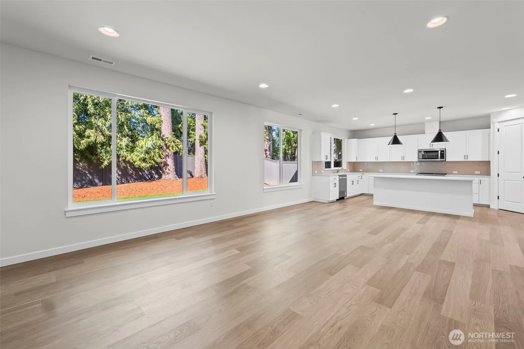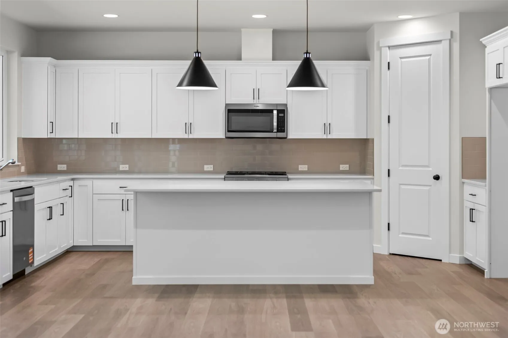 Mountain Glen, a Fabulous New Home Community in Puyallup. Final opportunity in this sought-after cul-de-sac community, ideally located near schools, shopping, dining & everyday conveniences. Move in just in time for summer and enjoy the perfect blend of comfort, style, and functionality. Designed with today’s lifestyle in mind, the open-concept main floor offers seamless indoor-outdoor living. The spacious great room w/ cozy gas FP flows effortlessly into the dining area and beautifully appointed kitchen—complete w/ quartz countertops, center island, tile backsplash, stainless steel appliances incl gas range, soft-close cabinetry, and a generous walk-in pantry. Step outside to your covered patio overlooking a fully fenced and professionally landscaped backyard—perfect for entertaining or relaxing all season long. Upstairs, retreat to the private primary suite featuring a walk-in closet, and convenient direct access to the laundry room. The spa-inspired 5-piece ensuite includes a glass and tile shower, soaking tub, and dual vanities. Additional highlights include designer-selected finishes, white millwork, wrought-iron railing, 8′ interior doors on the main level and heatpump with A/C for year-round comfort. Rare 3-car garage includes a 10′ high third bay door—ideal for larger vehicles, recreational gear, or extra storage. Builder included upgrades: mandoor in garage, upper/lower cabinets in laundry, coffered ceiling in primary & direct access to laundry room from Primary.