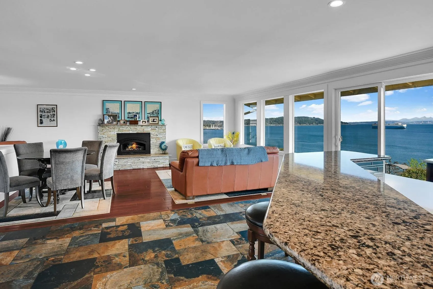 The truly best Views Imaginable of Puget Sound, City of Seattle, Blake Island, Mt Rainier, Vashon Island, Downtown Manchester, absolutely Breathtaking. Every Room in this Home has Puget Sound Views. This Fantastic residence has been redone in the finest traditions possible with exquisite elaborate finishes throughout the entire View Residence.Slate Entry, Hardwood Floors, Cherrywood Kitchen Cabinets including A Cherrywood finished Refrigerator, Quartz Kitchen Countertops, Custom crown and Base Moldings, Recessed Lighting,stack stone Gas Fireplace,Stain Glass, Solid wood doors, excellent custom color scheme,wonderful walk in sit down Three quarter Glass Block Shower with duel Shower heads, Rec Room with sophisticed lighting highlighting the aura of this area, Huge Double car garage with work space area and extra storage. This home is simply fantastic from top to Bottom. You will love it. I guarantee it.