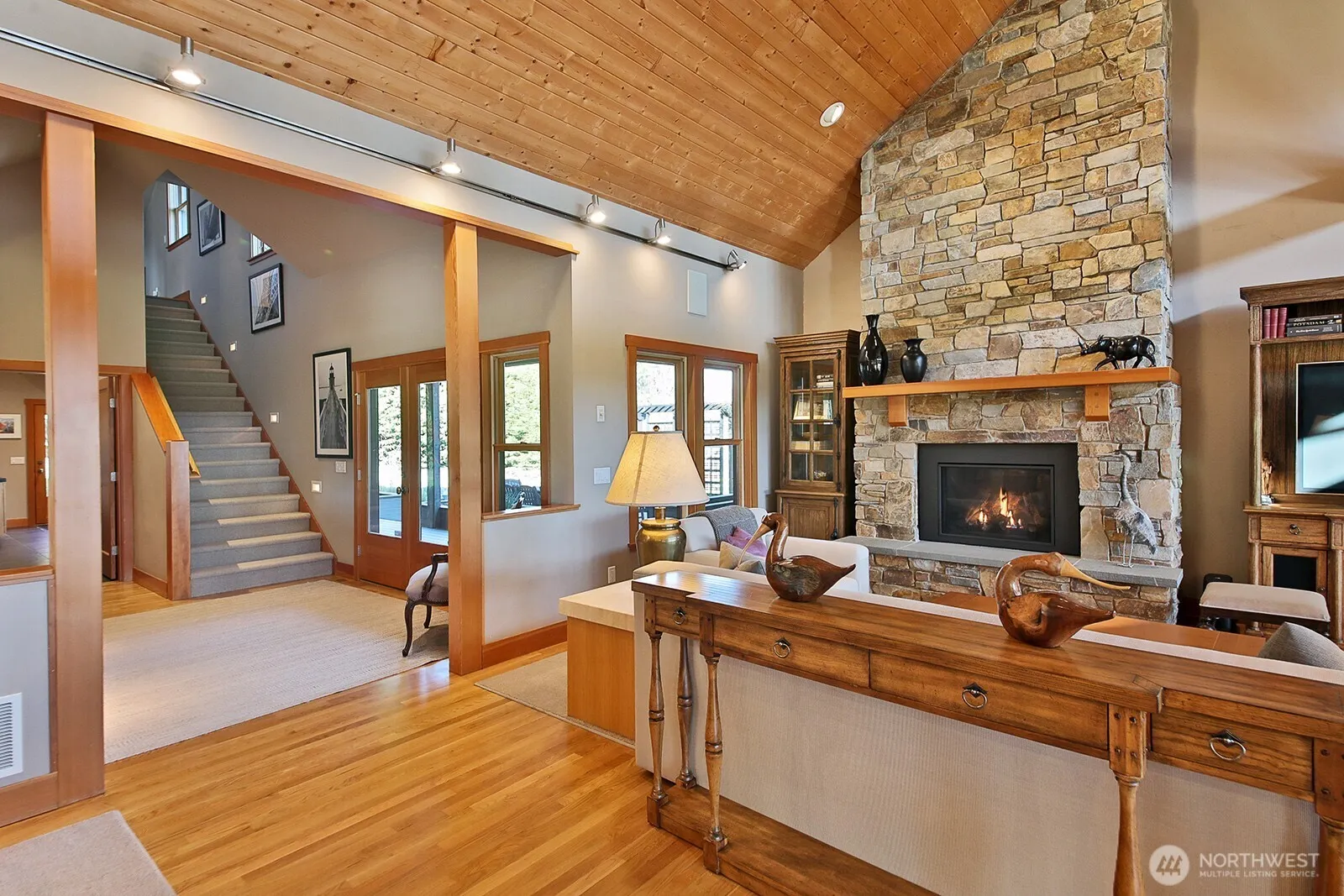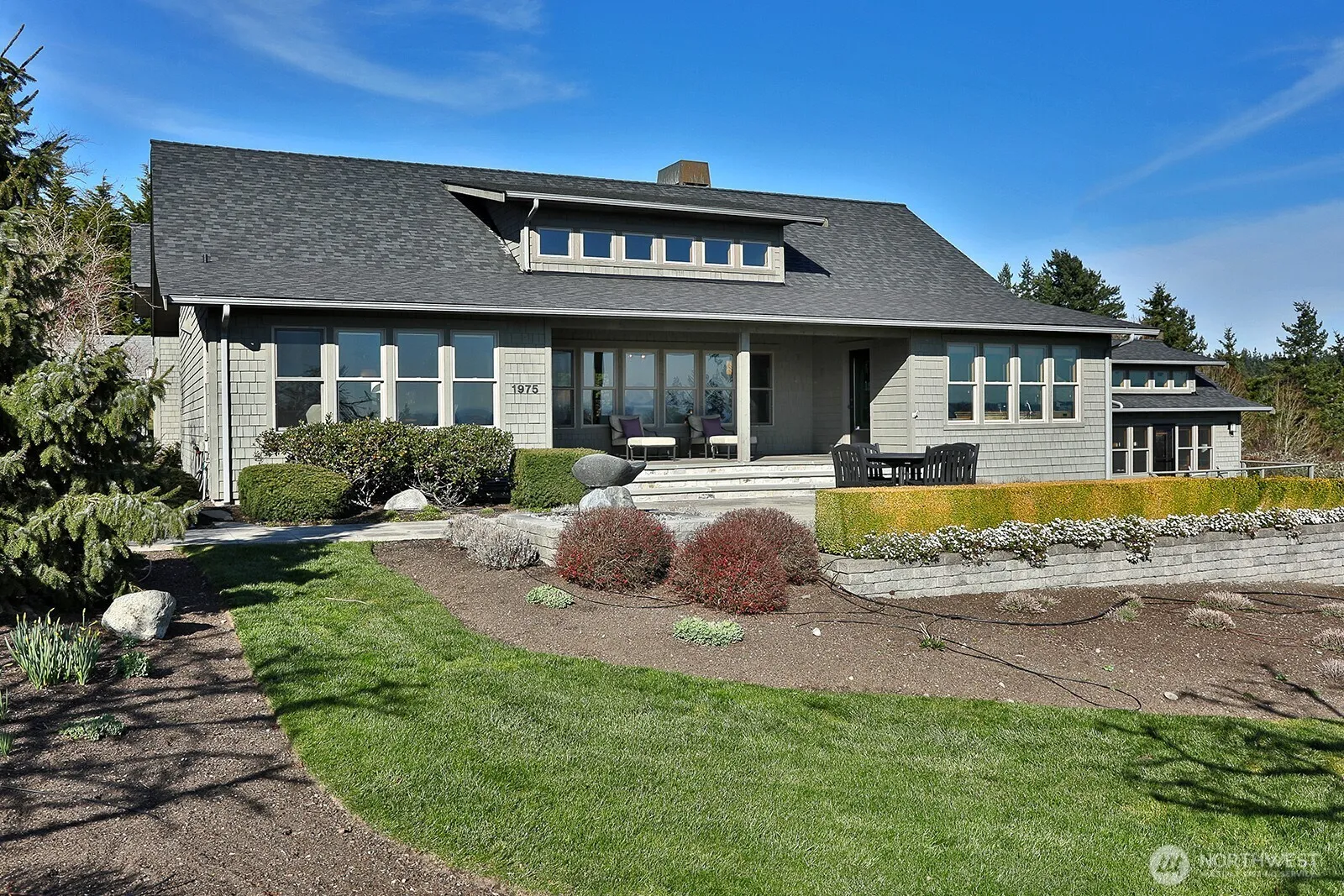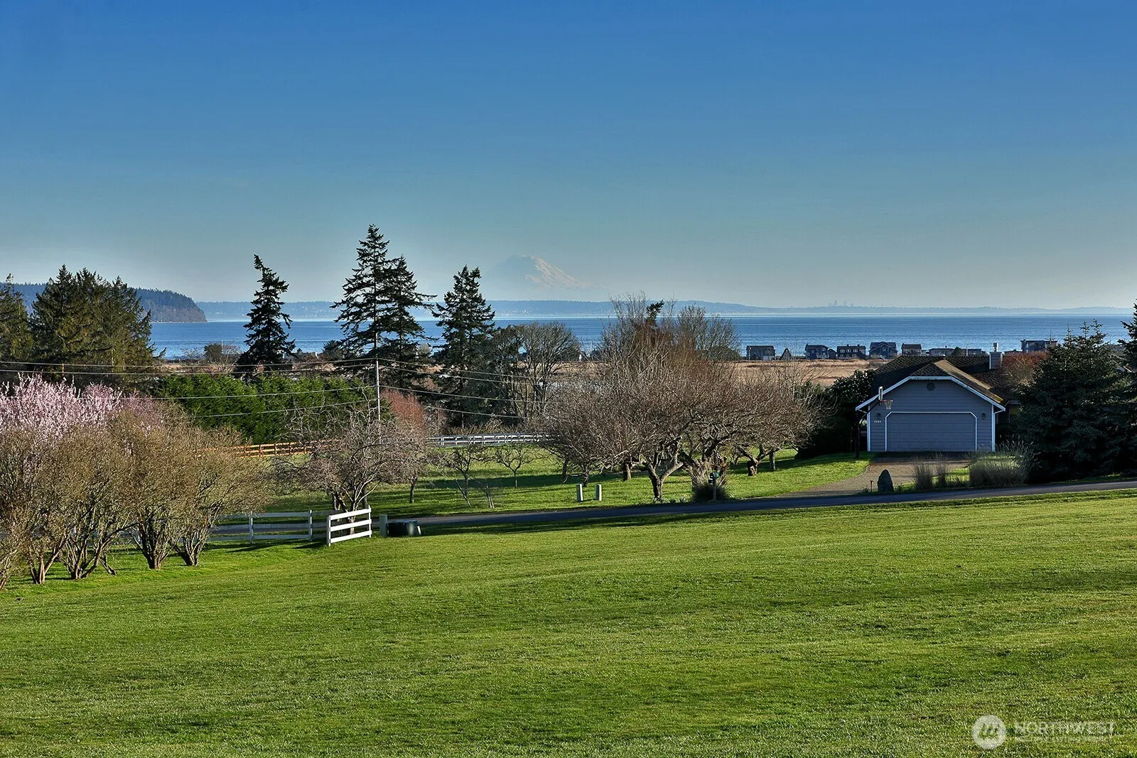 Experience casual luxury living on this stunning ~2.5-acre estate, where sweeping panoramic views stretch across Deer Lagoon, Useless Bay, majestic Mount Rainier, and the skyline of downtown Seattle. Thoughtfully designed for both comfort and style, the home features an open-concept floor plan anchored by a beautifully remodeled kitchen—perfect for gathering, cooking, and entertaining. Vaulted ceilings and exposed beams create a warm, inviting atmosphere filled with natural light, while the main-level primary suite offers convenience and a peaceful retreat. Indoor-outdoor living shines here, with expansive front and back patios ideal for summer dinners, sunset views, and hosting unforgettable gatherings. A charming guest house with its own deck captures the same breathtaking vistas, providing a private space for visitors or extended stays. The large, fenced yard includes garden beds ready for your seasonal harvest, blending function with beauty. Additional highlights include a whole house generator for peace of mind, plus a detached garage and spacious shop—perfect for hobbies, storage, or creative pursuits. This is Northwest living at its finest—private, picturesque, and designed for making memories.