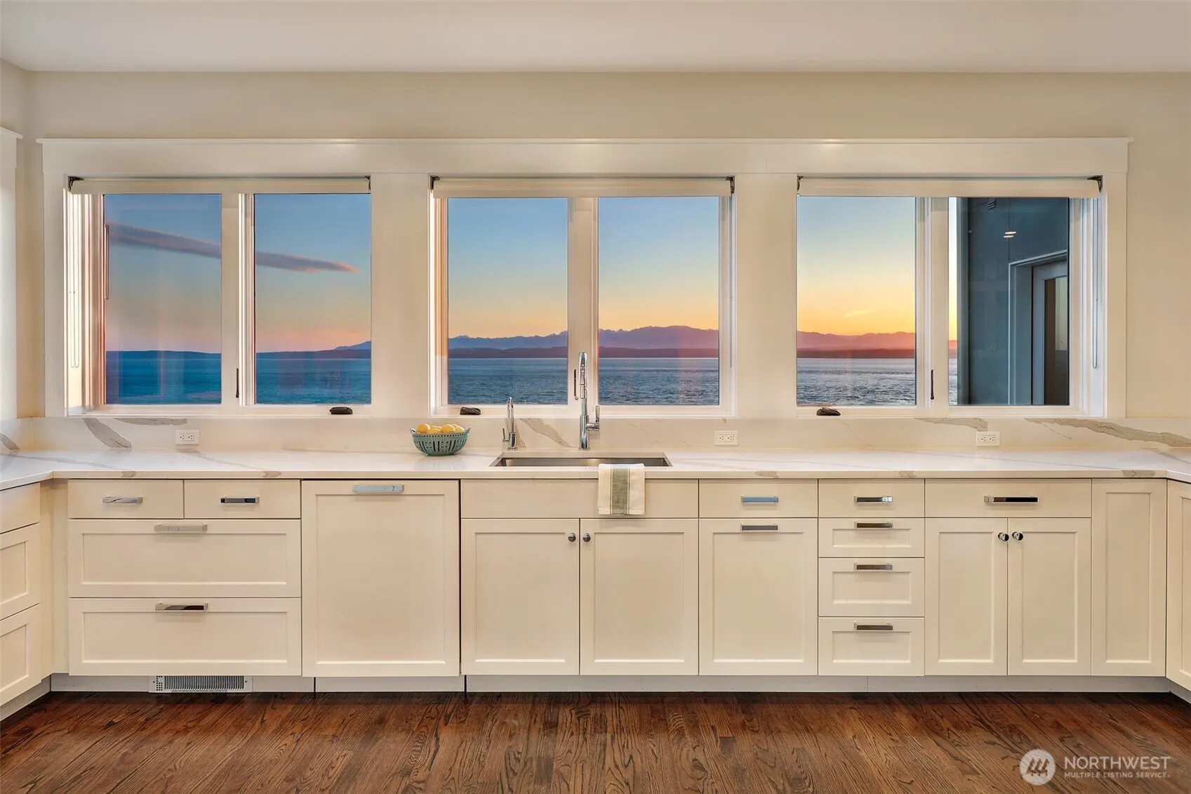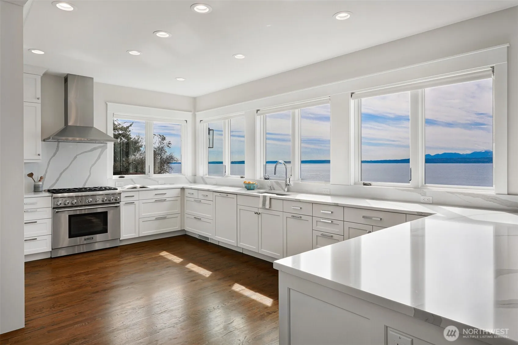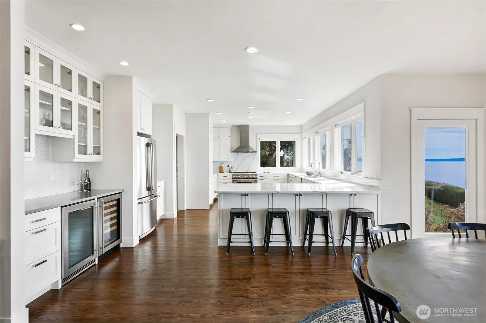 Welcome home to your slice of paradise with its ideal central Whidbey location with private beach access and breathtaking unobstructed west-facing views! Remodeled from top to bottom by meticulous owners, you’ll find no stone unturned in this spectacular waterfront remodel. The chef’s kitchen is open to the dining area for ease of entertaining whether for large crowds or intimate groups. New cabinetry, a Thermador gas range, gleaming quartz countertops, and both wine and beverage refrigerators. Enjoy your meals with a full view of the Puget Sound whether inside or al fresco on one of two new decks. The main level layout offers versatility with two generous living areas complete with beautiful hardwood flooring, recessed lighting and a gas fireplace. The two roomy bedrooms on the main level accommodate guests or working from home. The primary bedroom is perched above the backyard with pitch perfect views. You’ll enjoy whale watching and sunsets from the private deck. There’s room for a king bed and an area to lounge. The primary bathroom mirrors a spa experience with a dual head shower and a soaking tub. The second upper bedroom has room for multiple beds and boasts a beautiful en-suite bathroom. Outside, enjoy a verdant level yard and easy stairs down to the beach where you can wander this quiet stretch or gaze upon the busy shipping lane. Life is easy here! Quick to ferry, groceries, restaurants. Countless upgrades. Outdoor storage. Generator on site.