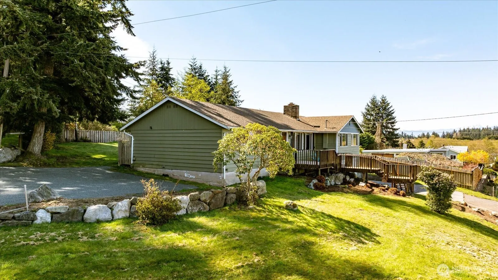 Imagine… the possibilities in this Freeland home with stunning views of Holmes Harbor and the Olympic Mountains. Ideally located near everyday amenities including the grocery store, hardware store, banks, restaurants, and post office, with Freeland Park and beach access just moments away. This 2,259 sq ft home offers a flexible layout and an opportunity to bring your vision to life. Create a primary bedroom with en suite bath and walk-in closet, design a functional laundry room with pantry or powder room, and tailor the space to fit your lifestyle. Set on a spacious corner lot, the property features a cozy backyard with covered patio and a large deck perfectly positioned to take in the sweeping water and mountain views. An additional parking pad with ramp access provides convenient main-level entry. A rare opportunity to customize a home in a highly desirable and connected location. Imagine… living the island life you have been dreaming of.