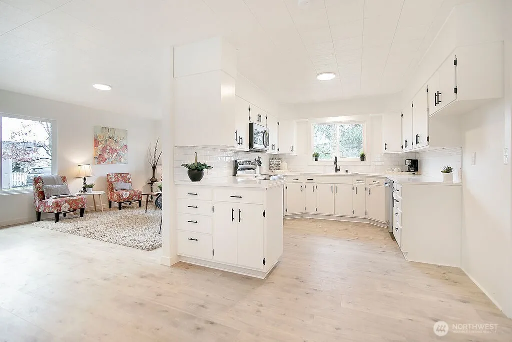 Centralia — UPDATED Single Level Home — 3 Bedroom / 1 Bathroom — 1408 SqFt — Living Room — Kitchen w/ Quartz Countertops — Stainless Steel Appliances — Microwave, Stove, Dishwasher — Tile Backsplash — Dining Space — Primary Bedroom w/ Walk in Closet — 2nd Bedroom has Double Closets — NEW Laminate Flooring — NEW Fixtures — NEW Interior & Exterior Paint — Wall Heat — Newer Roof — Huge Mudroom / Laundry Room has Extra Storage — Covered Porch — RV Parking — Dead End Street — Minutes to Shopping — Approximately 37 Minutes to Olympia