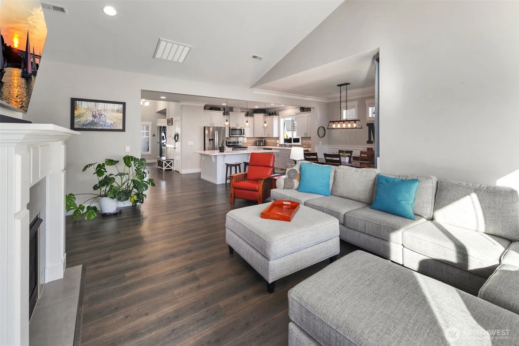 Well-maintained Ainsworth floorplan in Chinook Meadows offering 2,571 sq ft of primarily single-level living. Open-concept design with vaulted ceilings, engineered hardwood flooring, and a spacious great room centered around a gas fireplace. Kitchen features quartz countertops, shaker-style soft-close cabinetry, full-height tile backsplash, stainless steel appliances, and 5-burner gas range. Primary suite includes walk-in closet and ensuite bath. Additional bedrooms plus upper-level bonus space ideal for office, media, or guest use. Situated on an 8,000 sq ft lot with fully fenced yard, covered patio, and irrigation system. 3-car attached garage with EV charging capability plus dedicated RV and boat parking. Equipped with central A/C, HEPA air filtration, tankless water heater, and wired for generator. Located in Chinook Meadows with HOA-managed common areas. 0.2 mi to Chinook Elementary, 2.5 mi to downtown Buckley, and convenient access to Hwy 410.