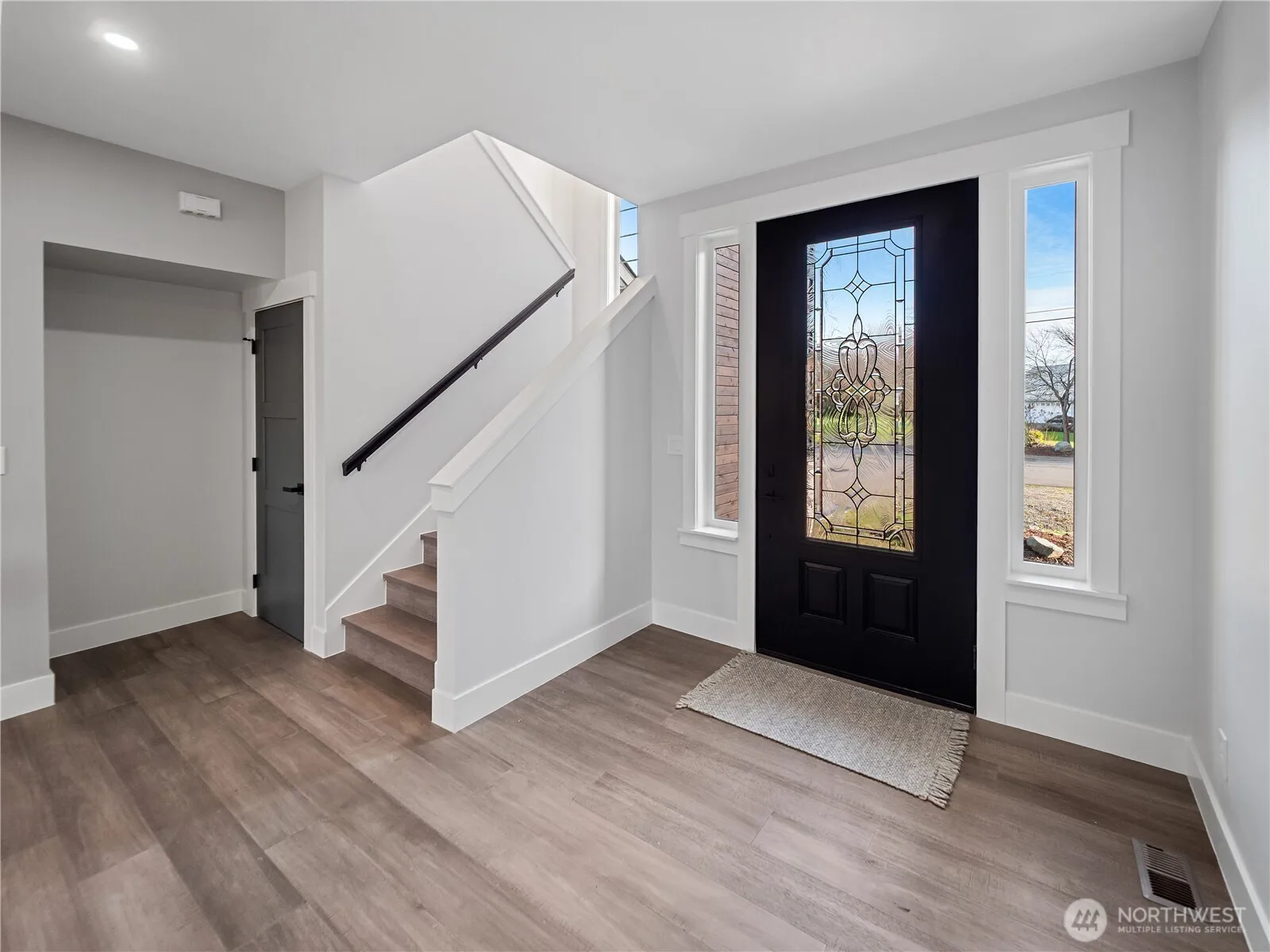 Welcome to this luxurious 3,606 SF, 4 bedroom plus bonus/media room, 4.5 bath Rainier view home on an 8,783 SF lot in Buckley! Built in 2024, ALL bedrooms include private full baths & walk-in closets. 9′ ceilings & LVP flooring throughout. Gourmet kitchen w/ SS appliances, quartz CTs, gas range, & huge pantry. Living room w/ gas fireplace & dining area. Massive primary suite w/ sitting area/reading nook & Mt. Rainier views. Primary 5pc bath w/ free-standing tub, custom tile shower, & big WIC. Office/den w/ built in shelving. Laundry/utility room upstairs. Guest room w/ full bath & walk-in closet on the main. Large, covered patio & fully fenced yard. XL 2-car garage. Forced air w/heat pump + AC. High-quality finishes all in a great location!