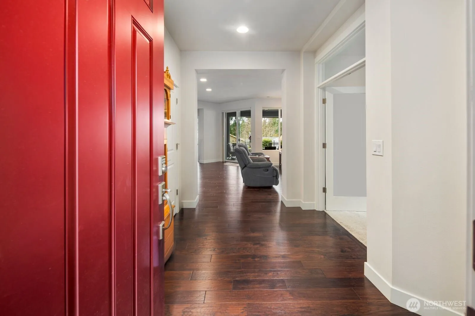 Experience effortless Northwest living in this beautifully appointed single-level home within a premier active lifestyle community. Designed with comfort and elegance in mind, this thoughtfully crafted residence features soaring ceilings, engineered hardwood floors, and an open-concept layout that creates an inviting sense of space throughout. The stylish kitchen is a true centerpiece, showcasing crisp white cabinetry, gleaming quartz countertops, stainless steel appliances, and a generous eating bar perfect for casual dining or entertaining. The spacious primary suite offers a peaceful retreat complete with a private ensuite full bath, while a second bedroom provides flexibility for guests or a home office. An oversized utility room adds exceptional functionality with abundant storage options. Step outside to the expansive covered patio where you can relax and take in tranquil views of the sound, with protected green space creating a natural buffer behind the home for added privacy. Front yard landscaping is maintained by the HOA, allowing for low-maintenance living and more time to enjoy the vibrant community lifestyle. Residents also enjoy full access to the beautifully appointed Jubilee Lodge, offering exceptional amenities and social opportunities that make this community an ideal destination for an active and connected way of life.