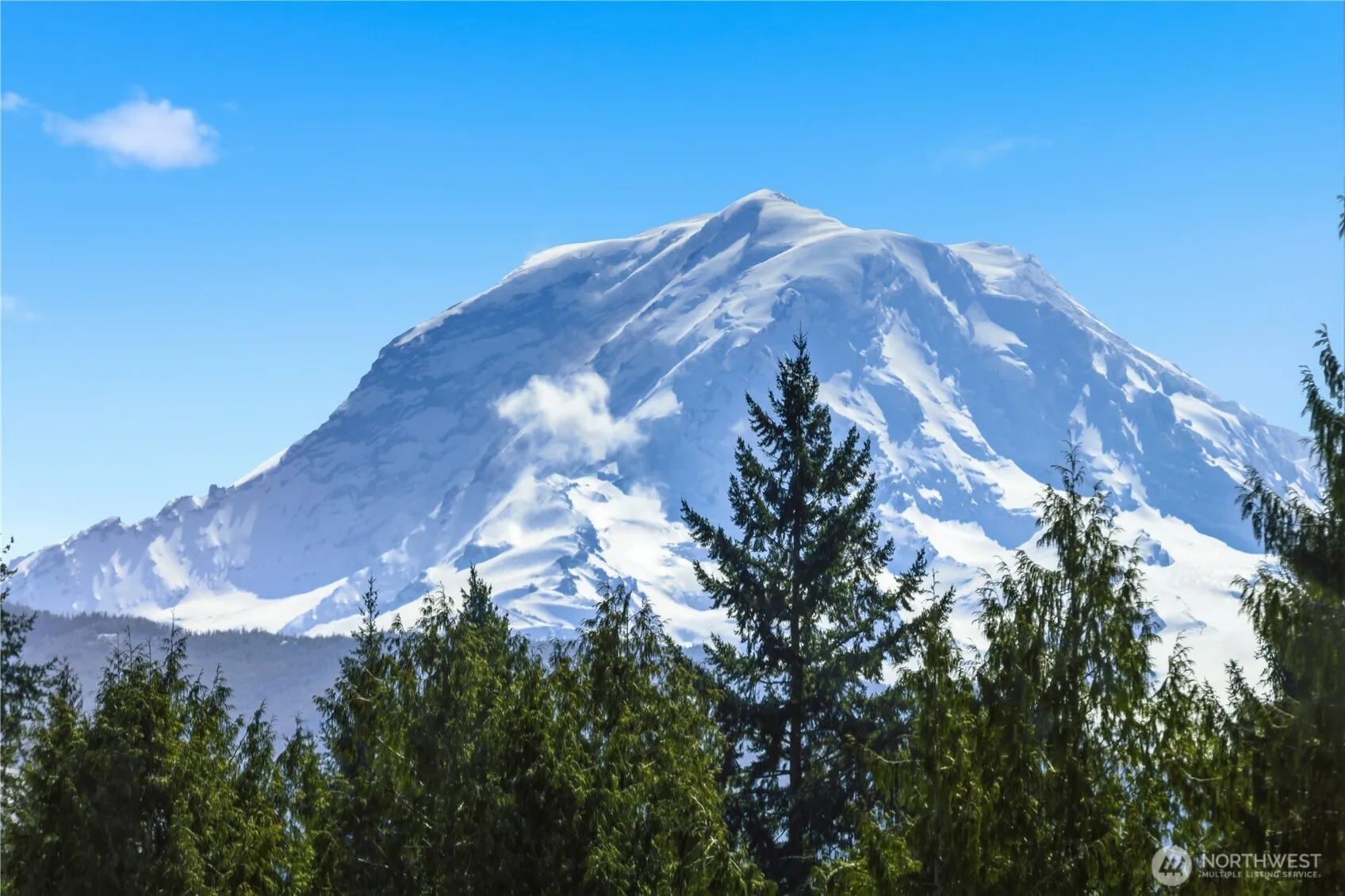Welcome to your own private paradise! This custom home is built to showcase views of Mt. Rainier. A – Frame design is perfectly aligned for viewing angle. Large open usable spaces abound with room for gardening, horses, chickens, goats, etc. Greenhouse is in great shape. Barn can be ready for equestrian use and there is plenty of space for an outdoor arena. Updates abound in Kitchen & Master with impeccable care and pride of ownership on display at every turn. Home has a private well with back up generator hook-up. This home lives like a one-story with Master on the main and the benefit of daylight basement with lots of room for a future apartment, ADU / MIL with separate entry. Backed up to 80 acres of forestry preserve land this home truly is one of a kind. The shared pond, majestic Rainier Views and large open spaces make for a setting that is irreplaceable. Additional vacant land lot included is wooded (value in timber) 1.39 acres with a gentle slope and gorgeous walking trails. Once cleared it should have incredible Mt. Rainier Views as well. Ideal spot for potential future build site. Call today to schedule a tour and visit the property of your dreams perfectly located between town and country!