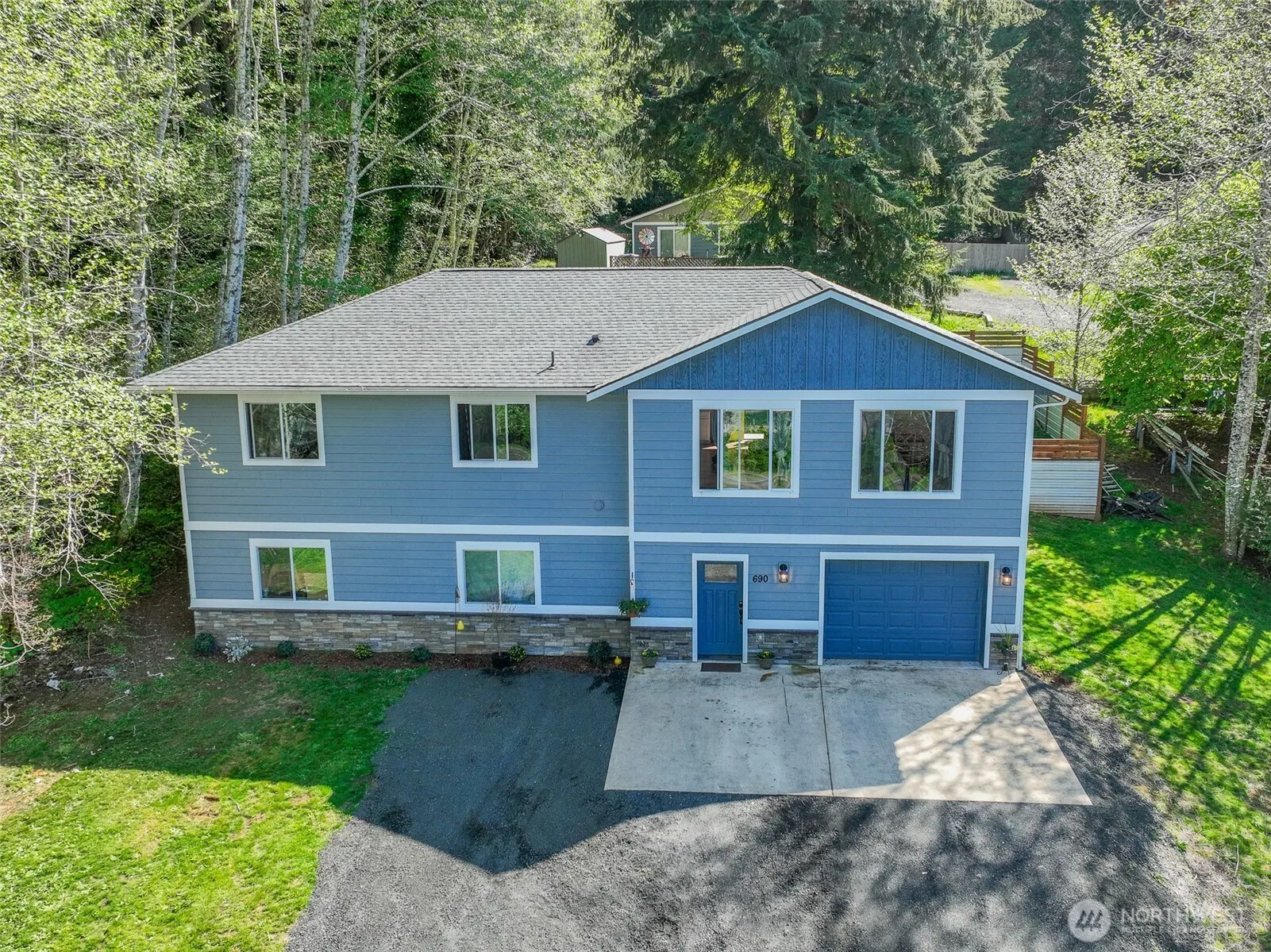 Nestled in highly desirable McCleary, this beautiful Northwest Contemporary home, newly built in December 2021, offers the charm of country living with convenient city access. Featuring 5 bedrooms, 2.75 baths, and primary suites on both levels, this thoughtfully designed home offers flexibility for multigenerational living, guest space, or possible ADU/duplex potential. With 2,736 square feet of living space, the modern open-concept layout is ideal for entertaining and everyday living, with abundant natural light, generous storage, fresh interior paint, quartz countertops, new white subway tile backsplash, eating bar, stainless steel appliances, propane tankless on-demand water heater, and French doors leading to the outdoor patio and fully fenced, private backyard. The spacious primary includes a large ensuite walk-in shower and walk-in closet. Additional features include a 1-car attached garage, plenty of extra parking for all your toys, vehicles, and guests, an outdoor hot water spigot, gated stairway for littles and furbabies, custom-built downstairs entertainment/game center with wall-mount setup, and a custom pressure-treated cedar and tin fence that offers privacy, durability, and modern style. All situated on a .27-acre lot in sought-after McCleary, where friendly small-town living meets convenient access to Olympia and JBLM.