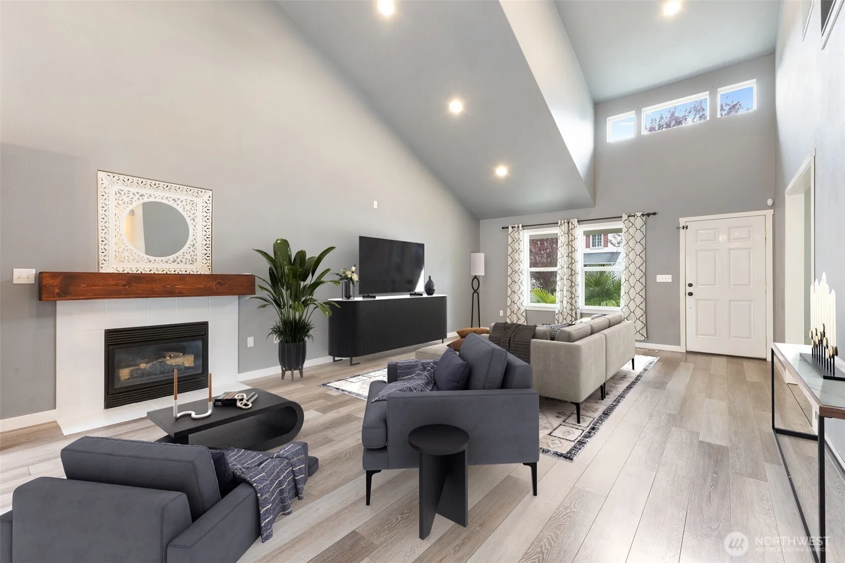 Welcome to this spacious and versatile 3-bedroom, 3-bath home designed for comfort and functionality! Vaulted ceilings create an open, airy feel throughout the great room and dining area, perfect for both everyday living and entertaining. The large kitchen features a breakfast bar, ample counter space, and a convenient butler’s pantry for added storage and prep. The main level primary suite offers a relaxing retreat with a luxurious 5-piece bath. Additionally, there is a main level den or home office—ideal for remote work or quiet space. The flexible floor plan includes a second bedroom, full bath, and laundry room on the lower level, with a bonus loft/play area and third bedroom upstairs. Enjoy outdoor living with a covered front porch, plus a backyard featuring a pergola and hot tub—perfect for relaxing or hosting guests. Additional highlights include a 2-car garage, security system, and a newer hot water tank (just 2 years old). Located in a desirable gated community with a park and two play structures, this home offers space, comfort, and a lifestyle you’ll love!