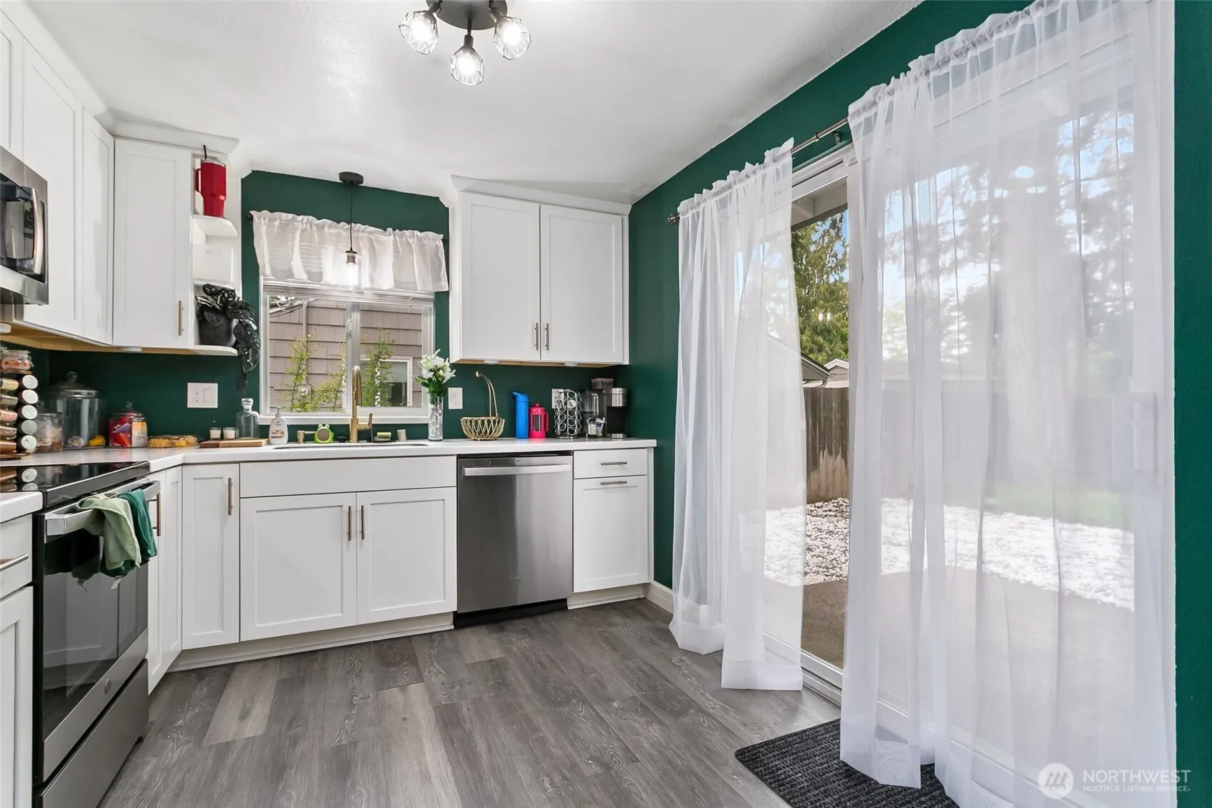 Bright and inviting, this home is filled with an abundance of natural light and thoughtfully designed for modern living. The open-concept floor plan creates a seamless flow between the living, dining, and kitchen areas—perfect for both everyday comfort and effortless entertaining. A cozy fireplace anchors the main living space, adding warmth and charm on cooler evenings. Step outside to enjoy the fully fenced backyard, offering privacy and plenty of room for outdoor gatherings, pets, or play. This home combines comfort, functionality, and style in one welcoming package.