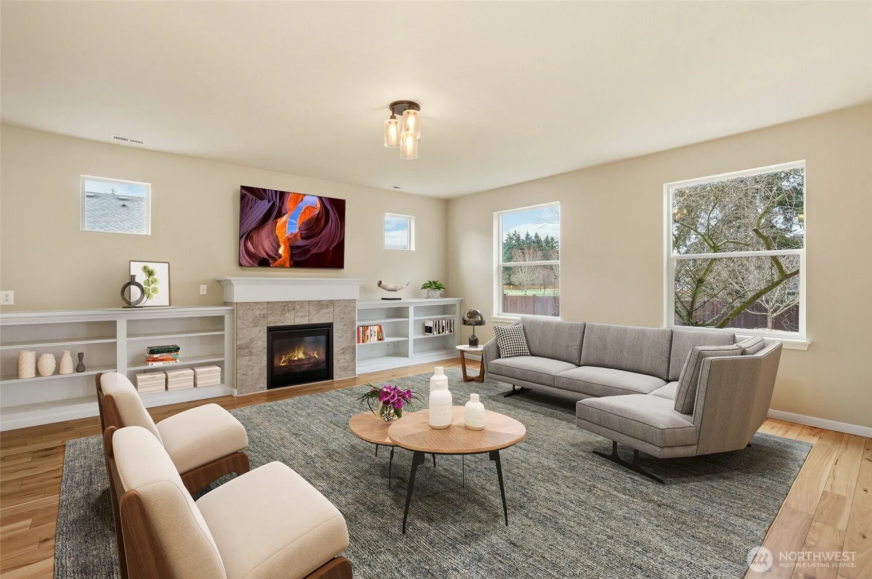 Welcome to this stunning 4-bedroom retreat in a private, gated Graham cul-de-sac! Boasting 3,202 sq ft of meticulously maintained living space, this home shines with fresh interior paint, updated designer lighting, and gorgeous solid hardwood flooring throughout the main level. The chef-inspired kitchen features slab granite, premium stainless appliances, and a custom mudroom with bench seating for effortless organization. Relax in the primary suite with a new ceiling fan and spa-like bath, or utilize the versatile front bedroom with its own walk-in closet. High-efficiency upgrades include a heat pump for year-round comfort, central A/C, and a tankless hot water heater. The massive 0.32-acre lot is an entertainer’s dream, featuring a covered patio, freshly stained fence, and professional landscaping. The spacious 3-car garage now includes a convenient new door from garage for easy backyard access. Prime location with a quick commute to JBLM, schools, and shopping. This move-in-ready gem truly has it all—welcome home!