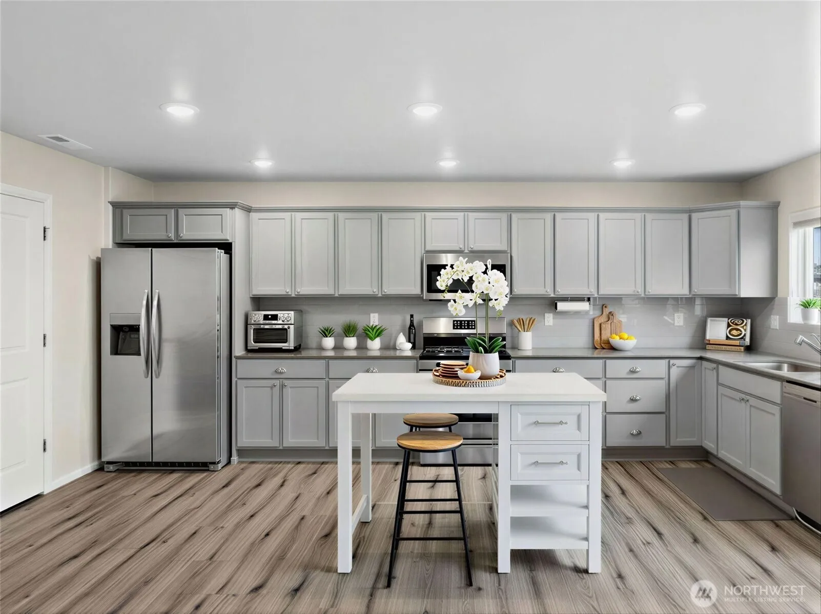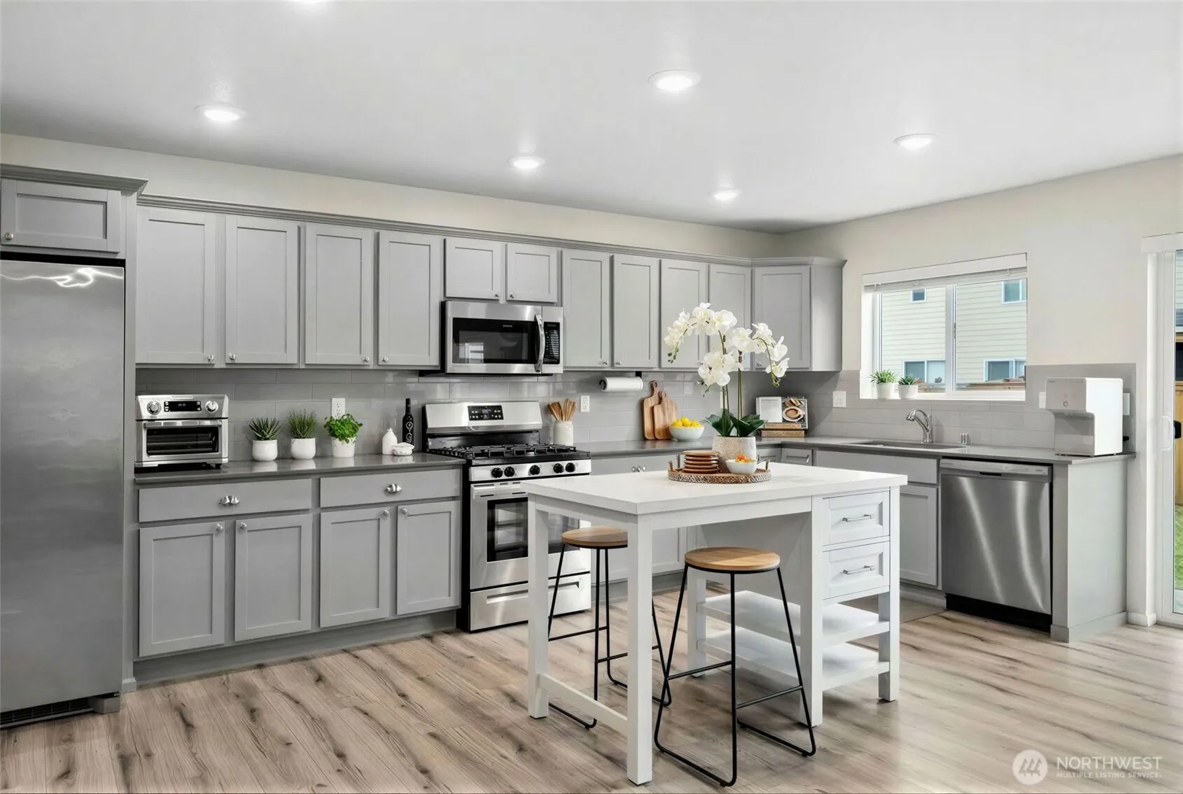 Welcome to Daybreak community in Graham! Stunning & meticulously maintained 4-bedroom, 2.5 bath home that epitomizes modern living and effortless entertaining! The main floor features a beautifully designed open concept living, luxury plank flooring and dining area, perfect for gatherings. The large kitchen boasts exquisite quartz countertops, stainless steel gourmet appliances, and a generously sized walk-in pantry, along with ample cabinet space. The spacious dining area comfortably accommodates your dining table, making it great for dinners. Upstairs, you’ll find a primary suite with a large walk-in closet and private bath. The versatile loft area is perfect for a home office, library, or playroom. Additionally, there are 3 nicely sized bedrooms and a full bath surrounding the loft. Outside, enjoy a generously sized fully fenced yard, 3 car garage complete with an electric car hookup and a heat pump/AC for year-round comfort. The property is located near 2 parks, in a prime location with easy access to Puyallup, Orting, Sunrise Medical Center, Good Samaritan Hospital, fair grounds and is just minutes away from all essential amenities! Don’t miss out on this incredible opportunity to call this beautiful home yours!