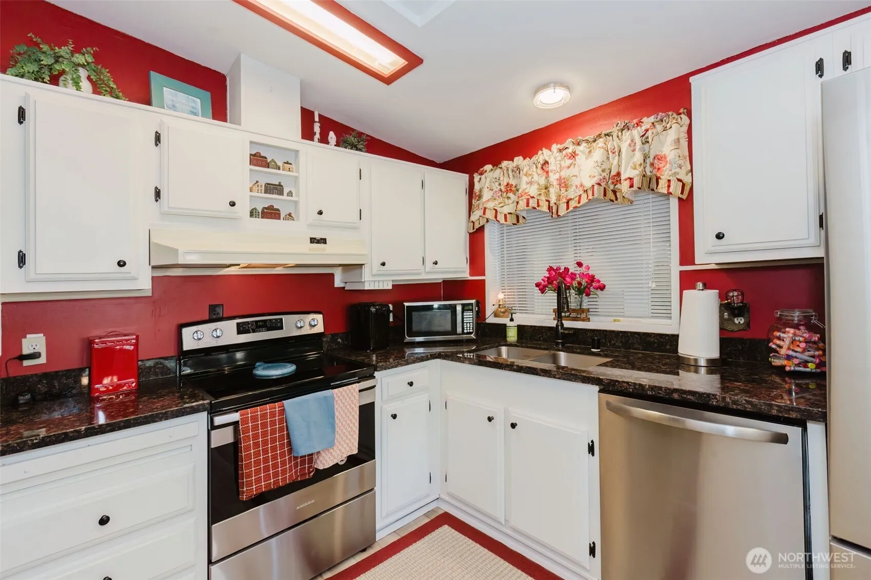 Welcome to Meridian Terrace, a beautiful well maintained 55+ park. This home has undergone quite the makeover! So much NEW here! NEW: Kitchen, bathrooms, flooring, furnace, roof, plumbing, light fixtures and more. Stylish kitchen has granite counters and stainless appliances opens to the inviting dining room and living room. Lots of windows let in the natural light. Large primary suite with a spacious bathroom and vaulted ceilings. 2nd room, currently an office can be a 2nd bedroom. Main bath is all new too and has a tub/shower. Laundry room has tons of storage space. Wrap around deck has a nice sitting area for enjoying nature and company. 2 car carport and storage shed too. Come check this cutie out!! You will fall in love. Very closes to all amenities and shopping. RV storage also available in the park.