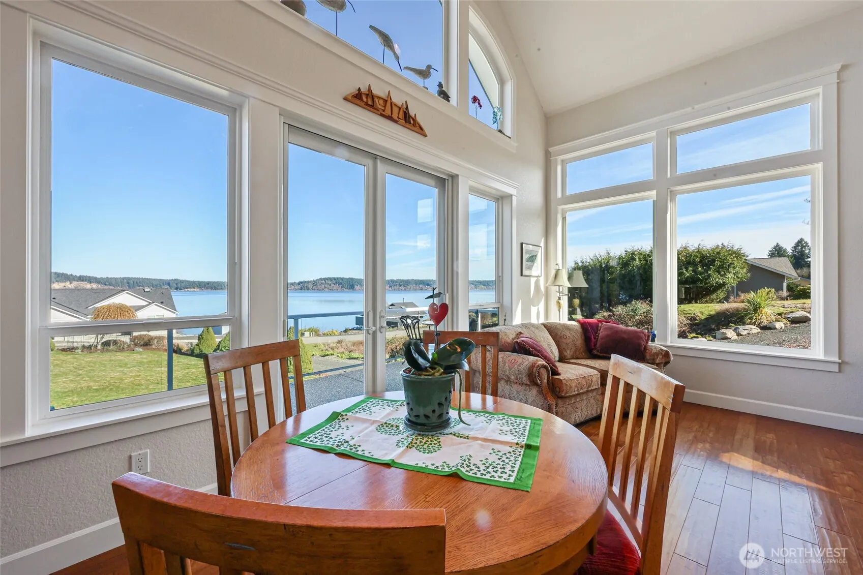 Wake to sweeping views of Puget Sound & Mount Rainier in this custom 2 bed, 1.75 bath retreat designed to capture the scenery of Case Inlet from nearly every room. The kitchen features Hi-Mac counters, abundant storage, & flows into the dramatic light & view-filled living & dining room with floor to ceiling windows. The main floor is open to the second floor with engineered hardwoods & vintage light fixtures throughout. A double-sided cozy wood fireplace warms the great room & den. Upstairs, a light-filled loft offers a private bedroom with separate entrance, ¾ bath, & expansive flex space ideal for a home office, studio, or media lounge. The loft railing & arch frame sweeping views, creating privacy & versatility for guests or extended living. The adjacent lot includes upgraded driveway access, ready for recreational use or future development. Landscaped yard with sprinkler system. Enjoy a private neighborhood trail leading to exclusive beach access, where days on the water are part of everyday life. Durable HardiePlank siding offers long-lasting curb appeal with low-maintenance designed for the Pacific Northwest. Milgard windows provide energy efficiency, abundant natural light, & expansive view lines while enhancing comfort year-round. Home generator for seamless power and heat pump low cost heating & cooling. High quality construction & carefully chosen materials for a home that is built to last.